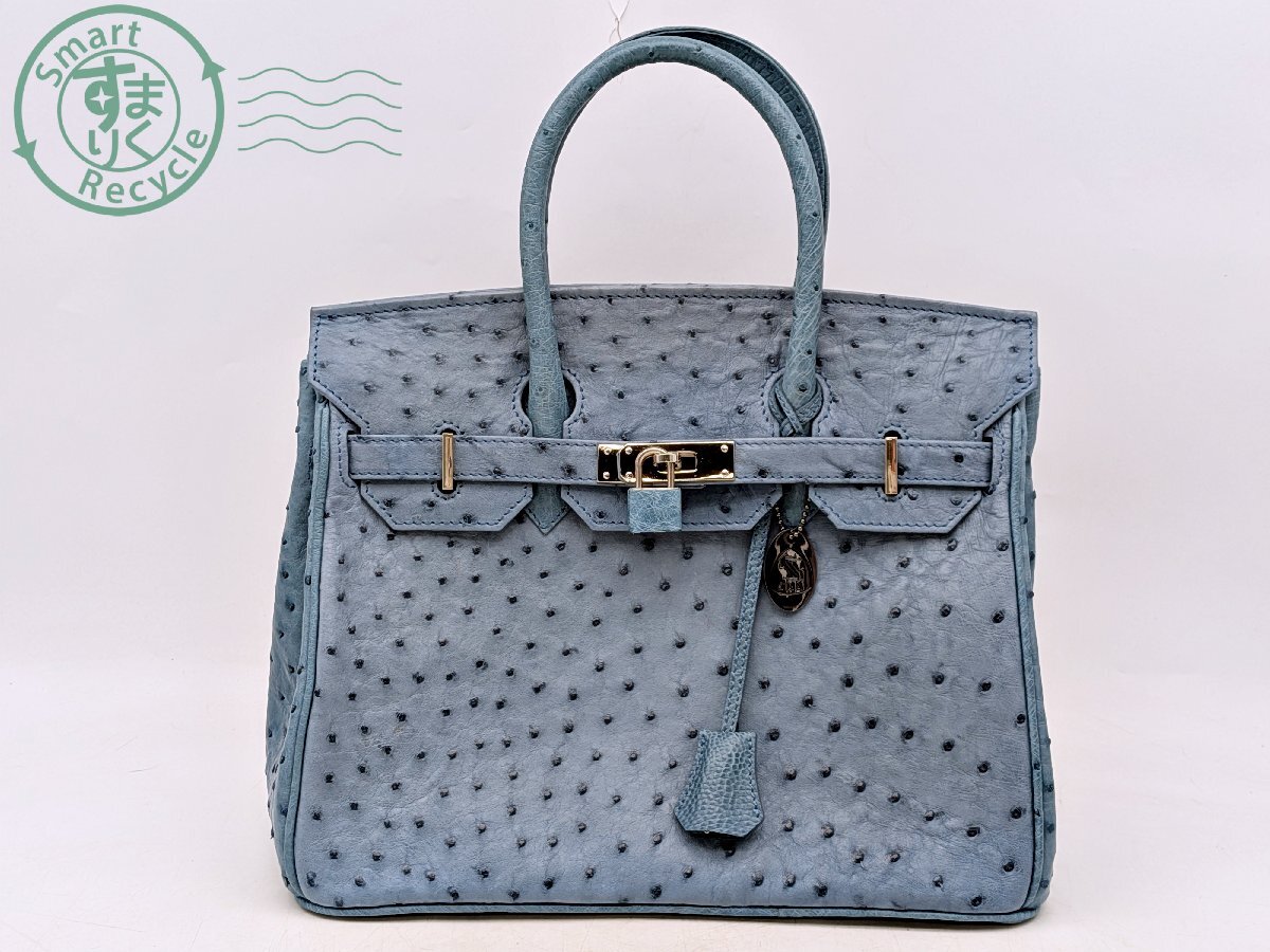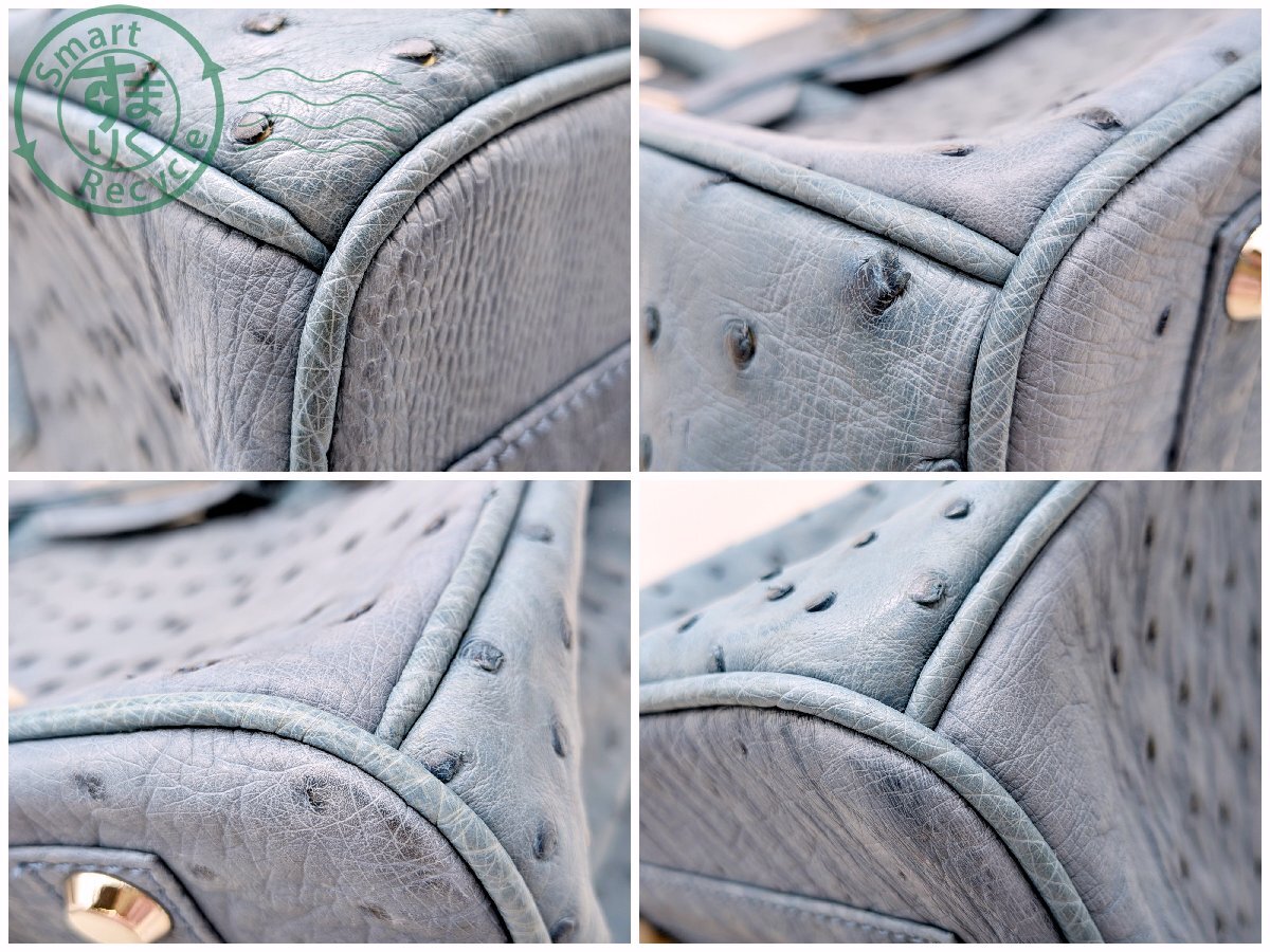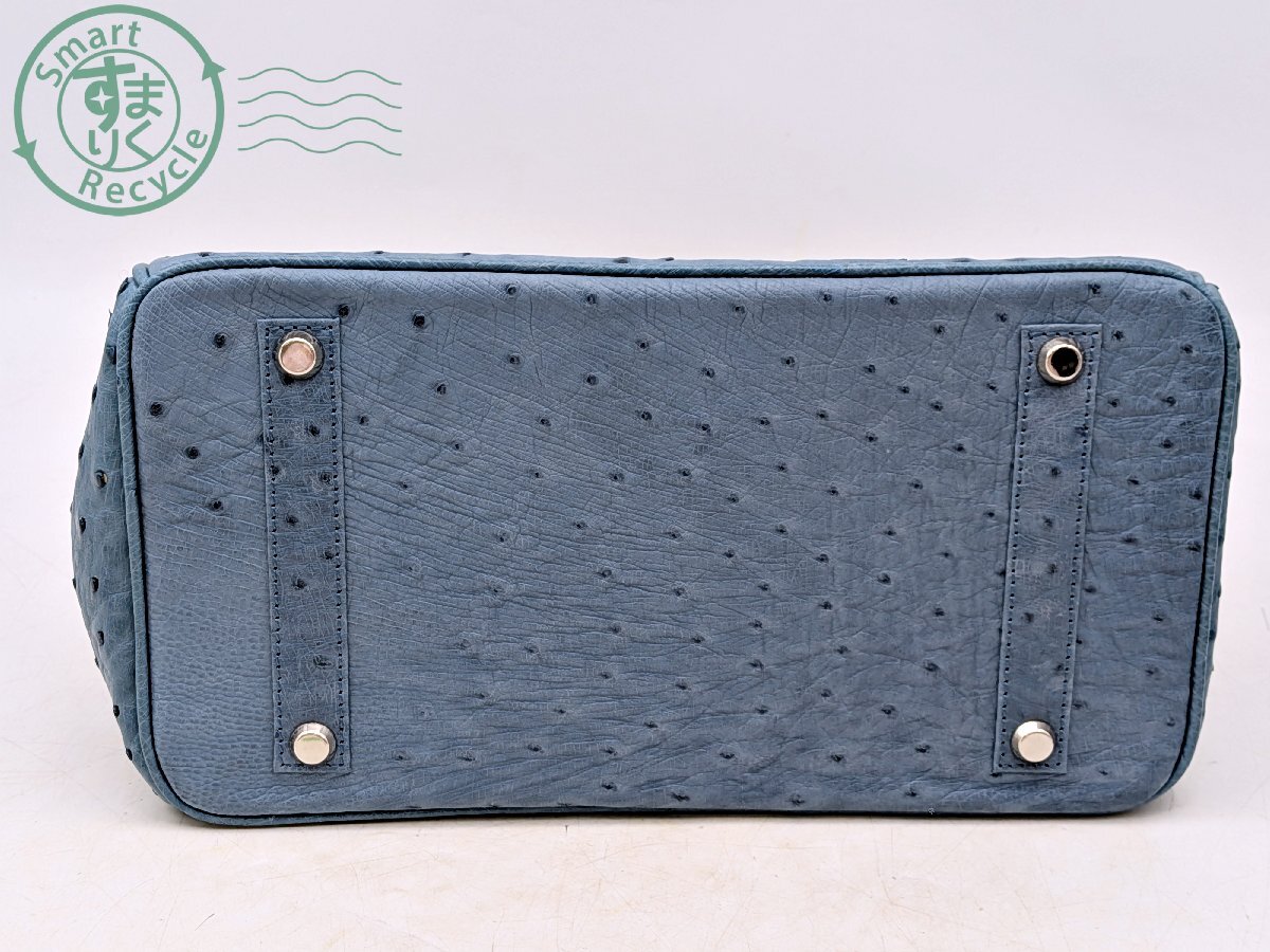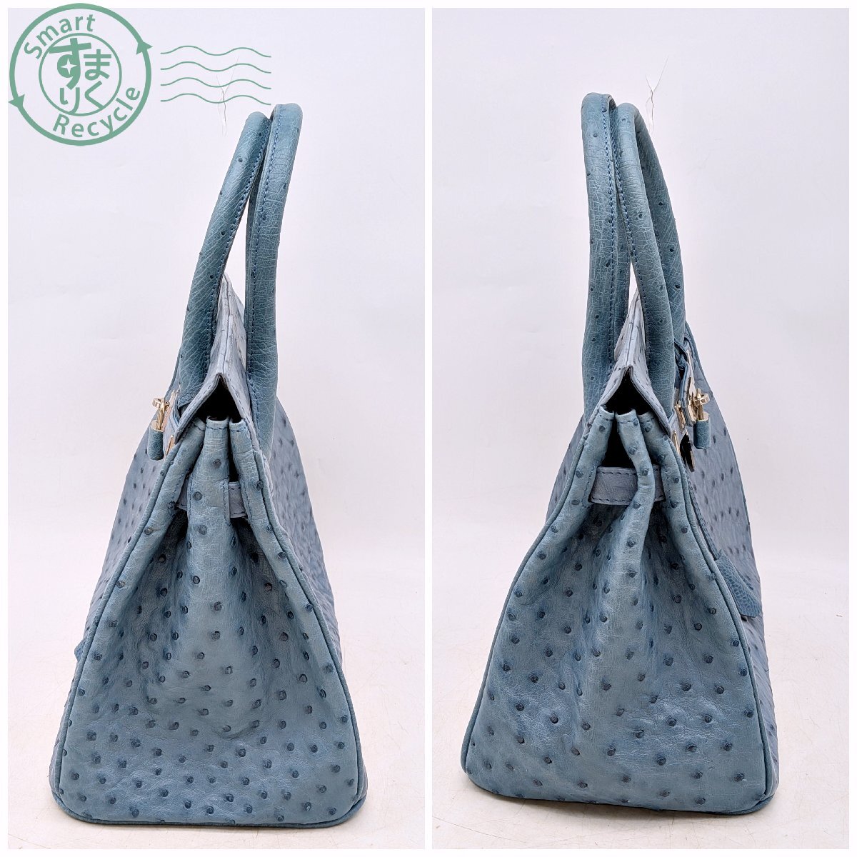 ★ JRA 日本製 377 ハンドバッグ オーストリッチ ブルー系 手提げ カバン 鞄 レディース 鍵 南京錠付き 中古 | |||