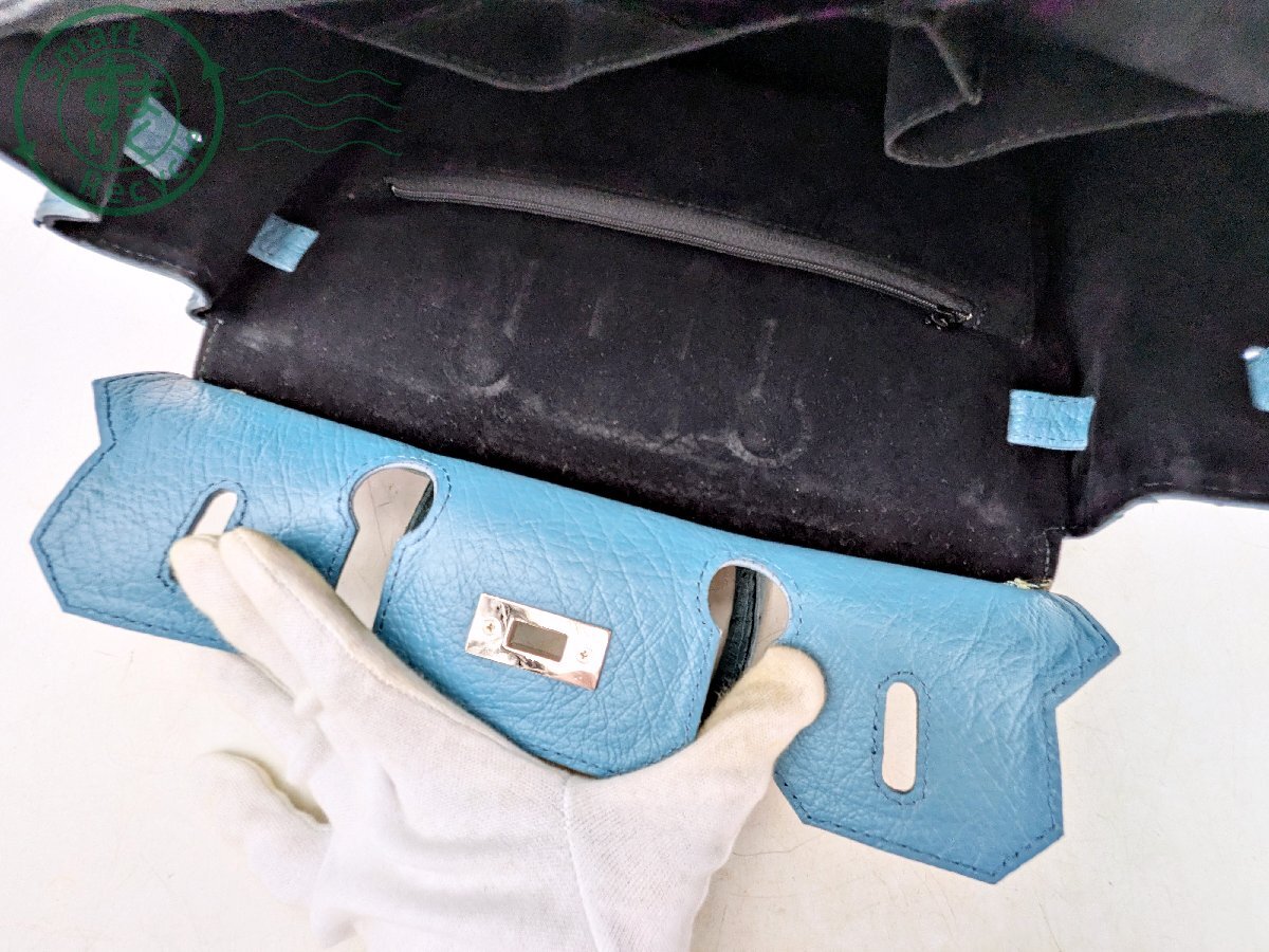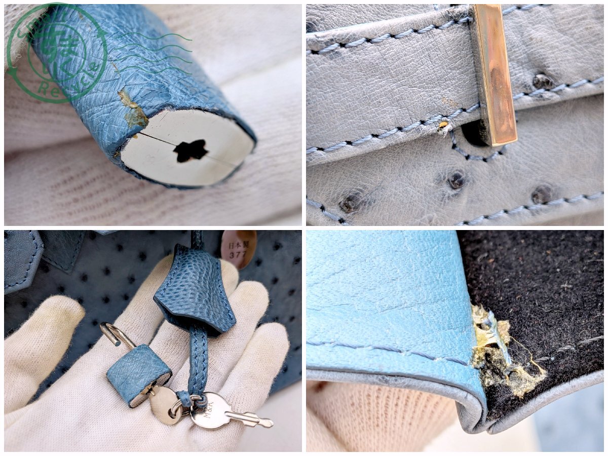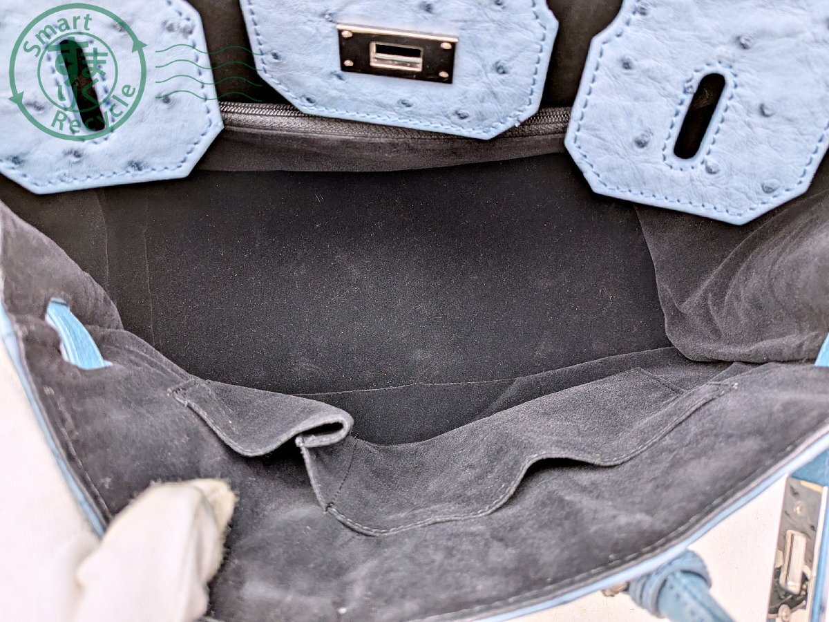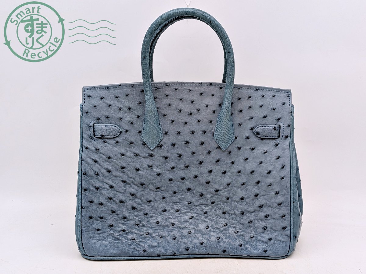 ★ JRA 日本製 377 ハンドバッグ オーストリッチ ブルー系 手提げ カバン 鞄 レディース 鍵 南京錠付き 中古 | |||
