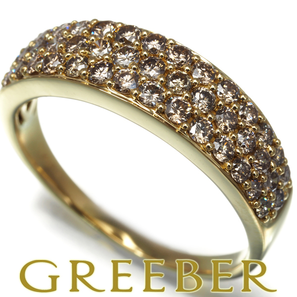 上質な透明感からブラウンならではの鮮やかな輝き放つダイヤモンドを総計0.90ctもの贅沢な煌めきでパヴェセッティングしたリングです。 |