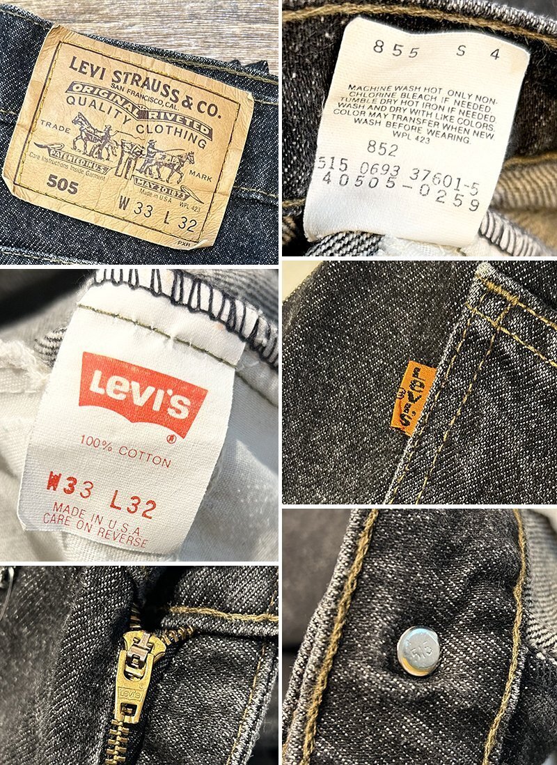 90’s USA製 ビンテージ LEVI'S リーバイス505 505 先染め 黒 デニムパンツ ブラックデニム 33x32 EF1813-50-EF27 検 501 550 80's