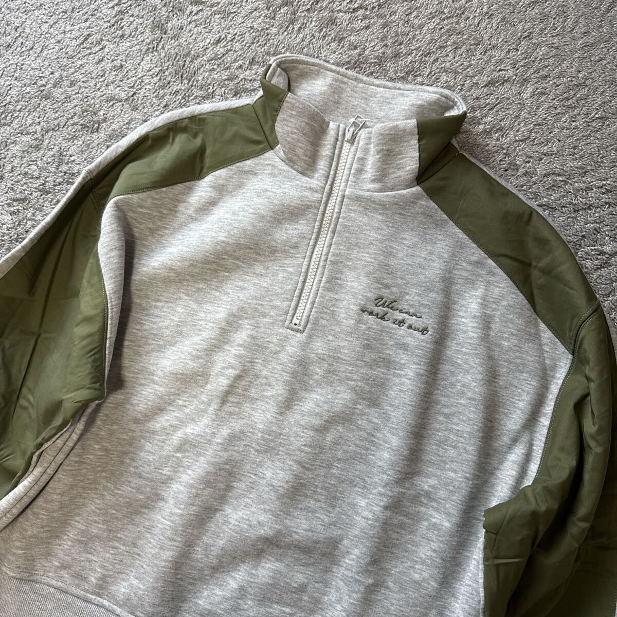 メンズ 裏起毛ロゴ刺繍異素材配色ネックジップトレーナーグレーカーキです。 未使用ですがタグはついていません。 サンプル品のため品質ネームや襟ネームはついていません。 自宅保存なので細かい事を気になさる方は ご入札を避けて下さいね♪ サイズはMサイズぐらいです。 平置きで身幅56センチ 着丈57センチ 素人なので多少の差はご了承ください。 実際のお色と画像は光の具合により 多少異なる場合があります。 | |||