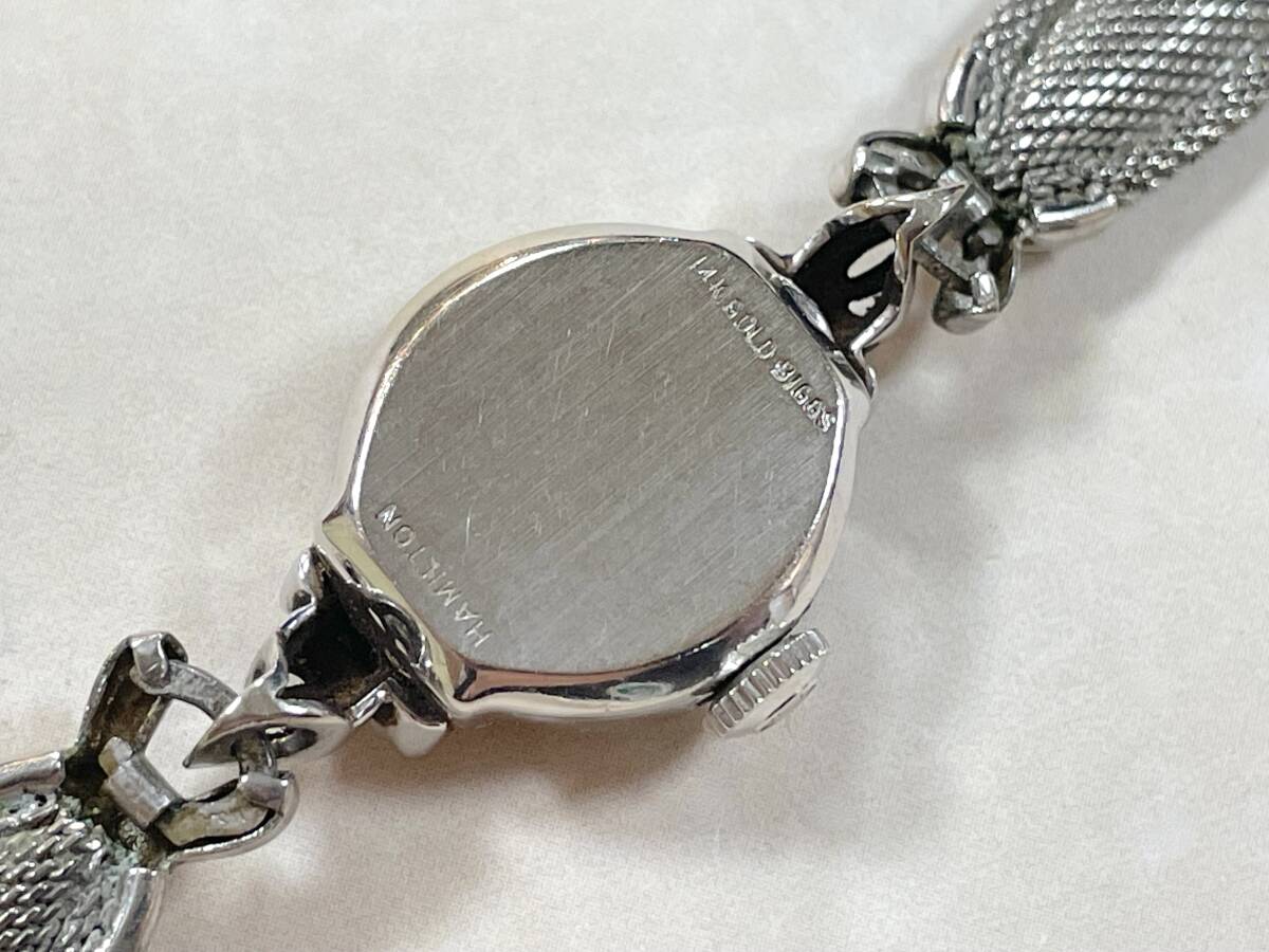 ケース裏側に「14K.GOLD-BIGGS HAMILTON」の刻印があります。