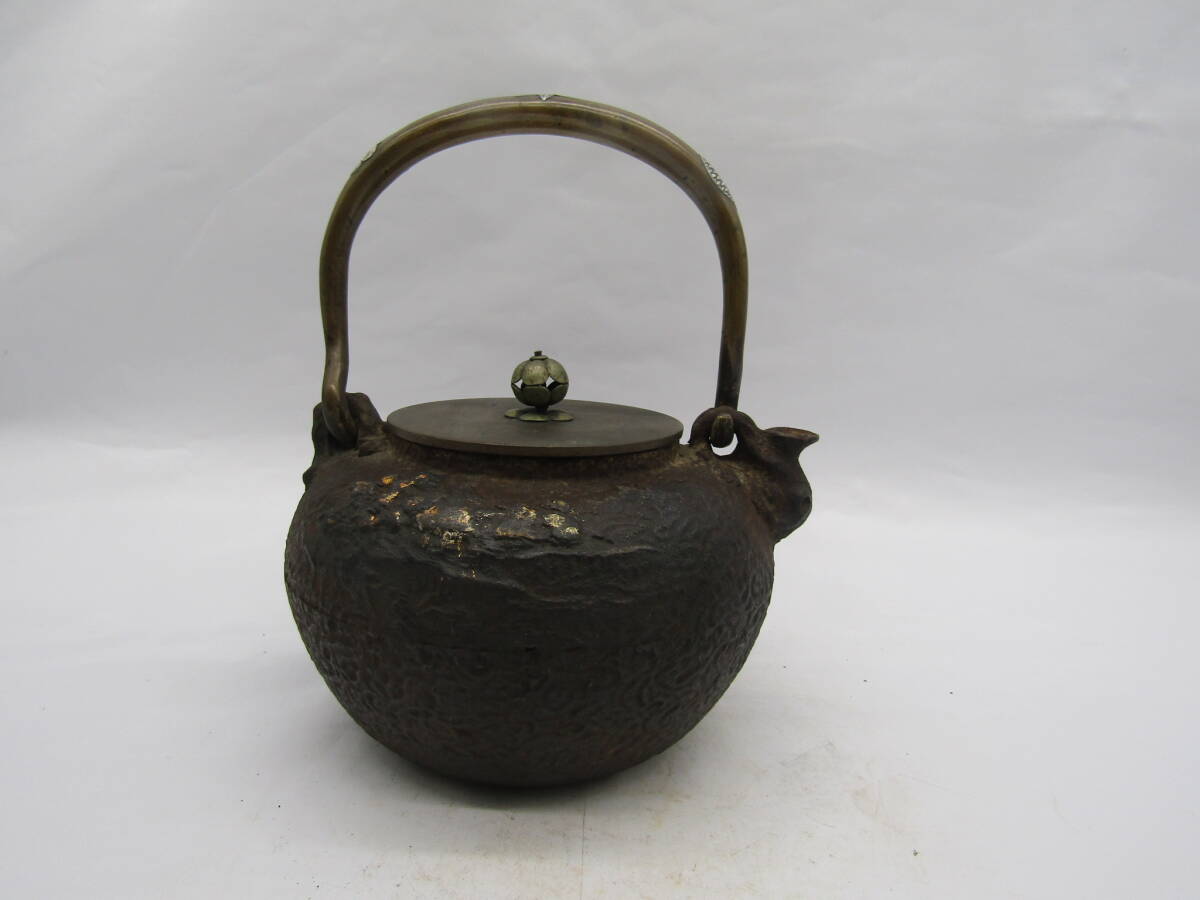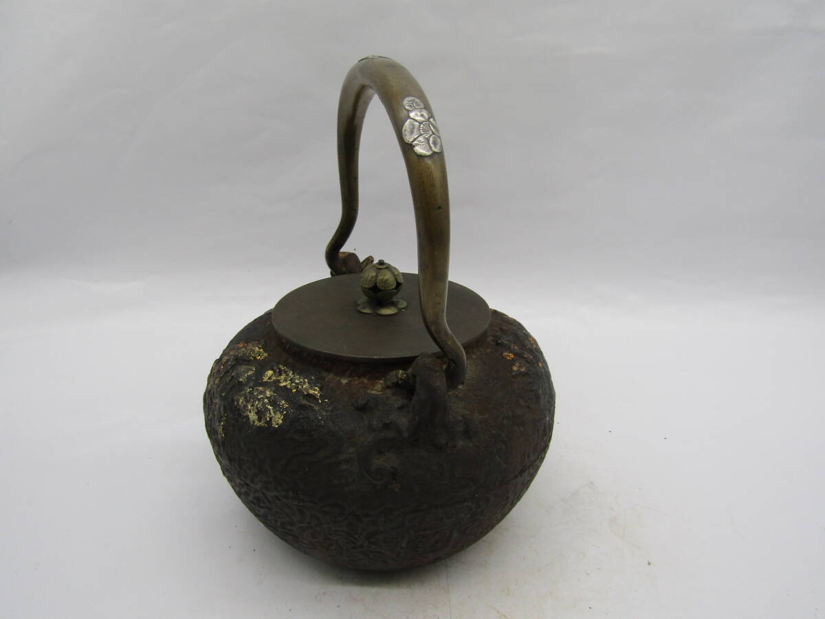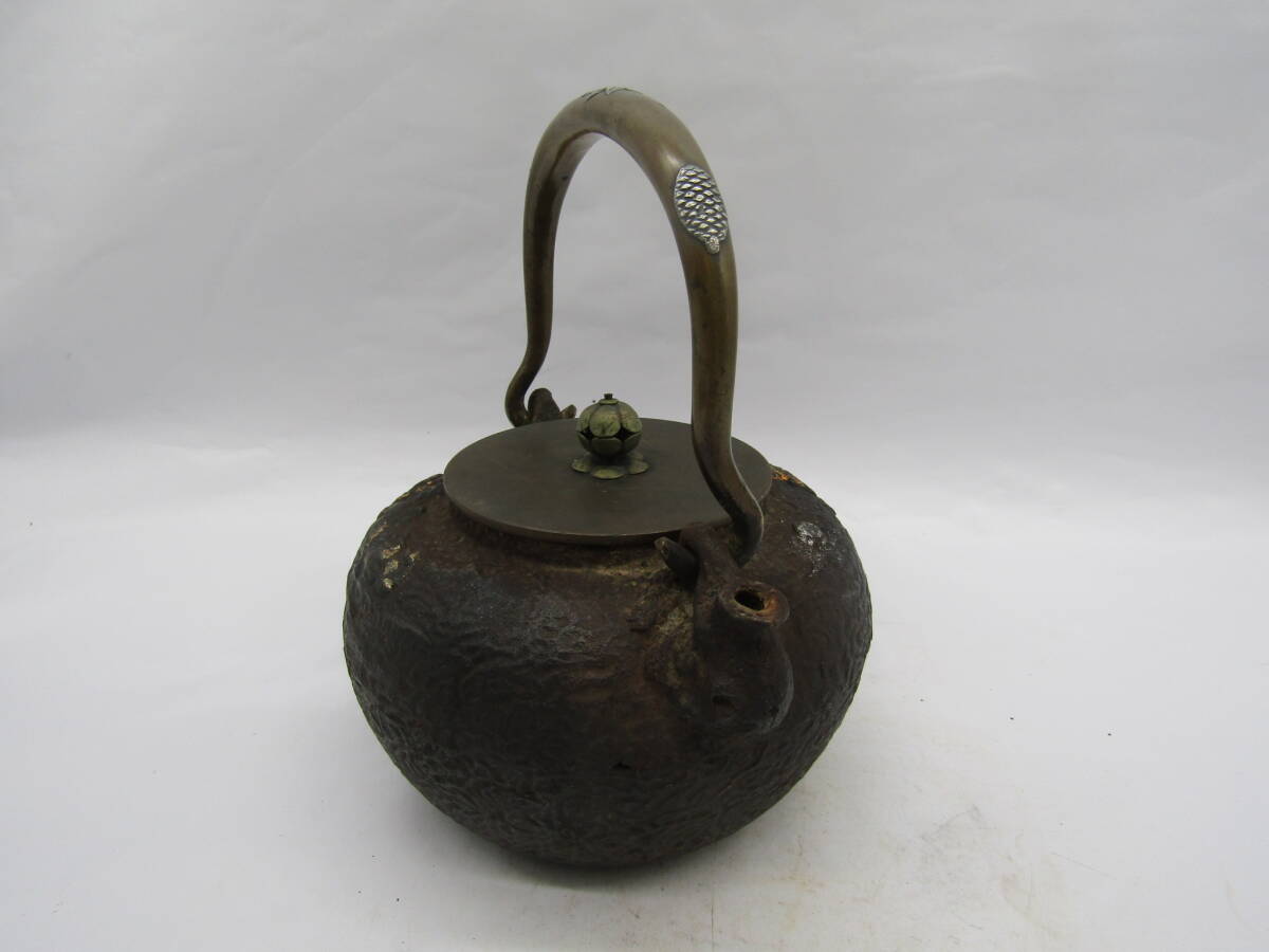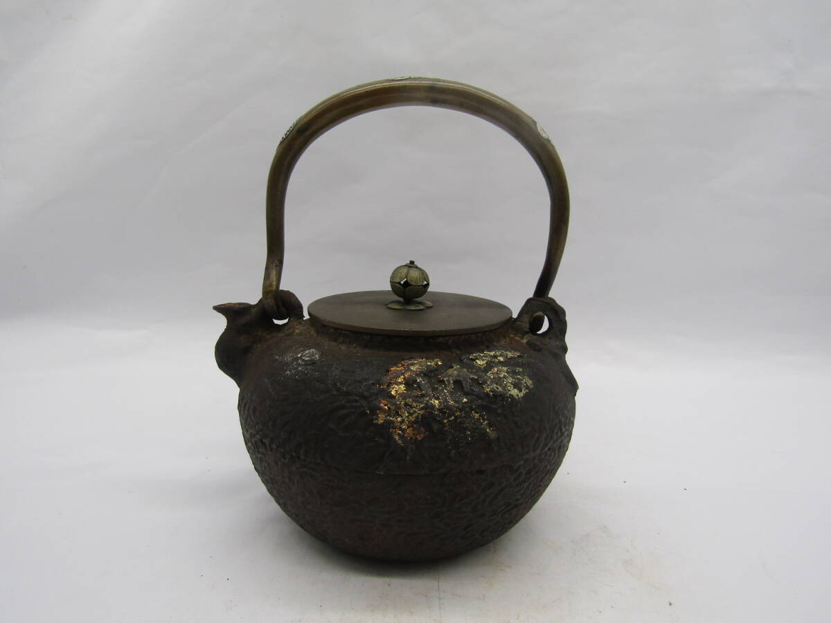 鉄瓶 時代 金銀象嵌 楼閣山水 日本亀文 在銘 煎茶道具