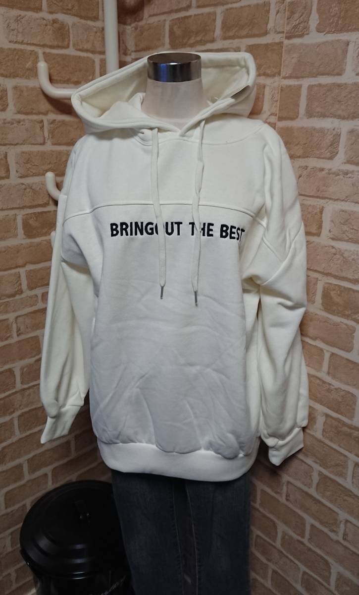 INGNI イング 起毛裏毛切り替え ロゴ フード チュニック スウェットパーカー アイボリー 新品