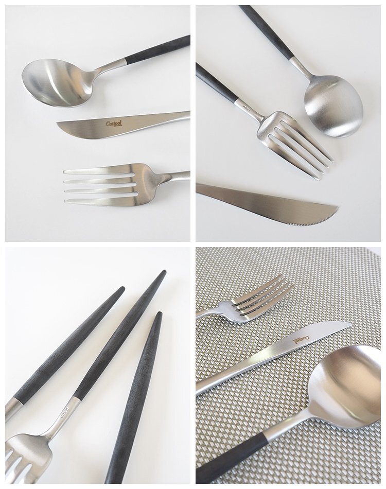 新品 1円出品 Cutipol クチポール GOA ゴア black カトラリー ディナーナイフ ディナーフォーク テーブルスプーン 人気 定番 おしゃれ ポルトガルのカトラリー専門メーカー【Cutipol / クチポール】の人気シリーズGOA。洗練された細い柄と曲線が特長です。 樹脂製の柄はお手入れがしやすく、人間工学に基づいて設計されたフォルムは手になじみます。 食卓やインテリアのテイストを問わずコーディネートでき、使いやすさと見た目の美しさを兼ね備えたカトラリーです。 ・内容: GO05 テーブルスプーン×1本 GO04 ディナーフォーク×1本 GO03 ディナーナイフ ×1本 ・サイズ: GO05:約21.1cm GO04:約21.7cm GO03:約23.1cm ・カラー/ブラック ・素材/ステンレス(つや消し/マット)、樹脂 ・生産国:ポルトガル 【ご確認ください】 ・箱は付属いたしません ・こちらの商品はすべて職人によるハンドメイドの為、風合い・形状・サイズ・色味等若干の個体差がございます。 (柄の形状や濃淡、先端の厚み、サイズ感や太さ、ロゴの濃淡、にじみや刻印の潰れ、等) また製造工程上の小傷や擦れ、金属のくすみやシミがある場合がございます。 ・入荷時期によりロゴの色味やデザイン、商品のサイズ・形状等仕様が異なる可能性がございますが、ご指定や交換はお受け致しかねます。 ・持ち手の樹脂は最初は白っぽいお色味ですが、ご使用されるうちに少しずつ濃くなります。 上記はメーカー検品を通過しておりますので良品とさせていただきます。 ※当商品は、海外正規販売店から輸入した商品となります。 発送方法:クロネコヤマト ネコポス プチプチで巻いての発送です。 |
