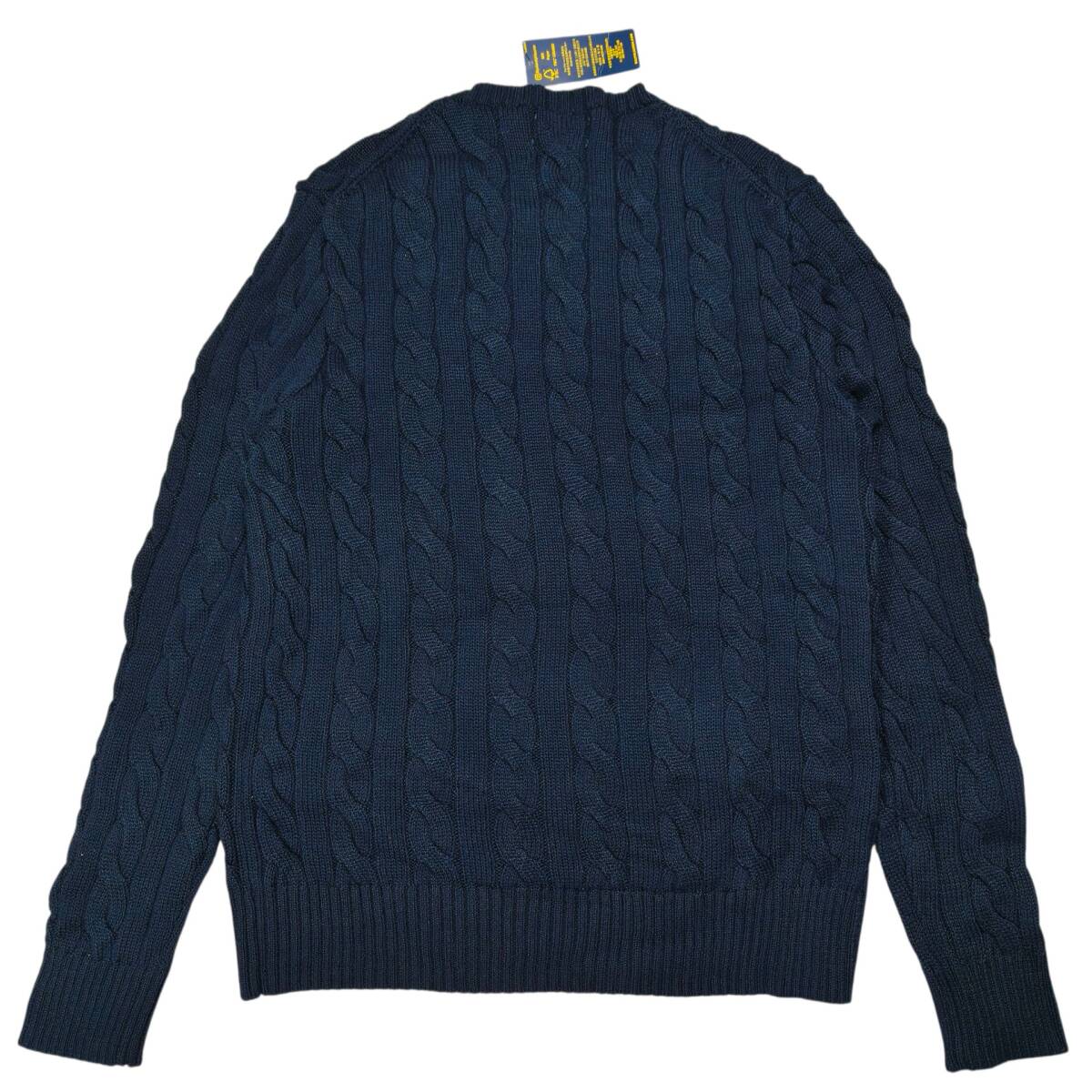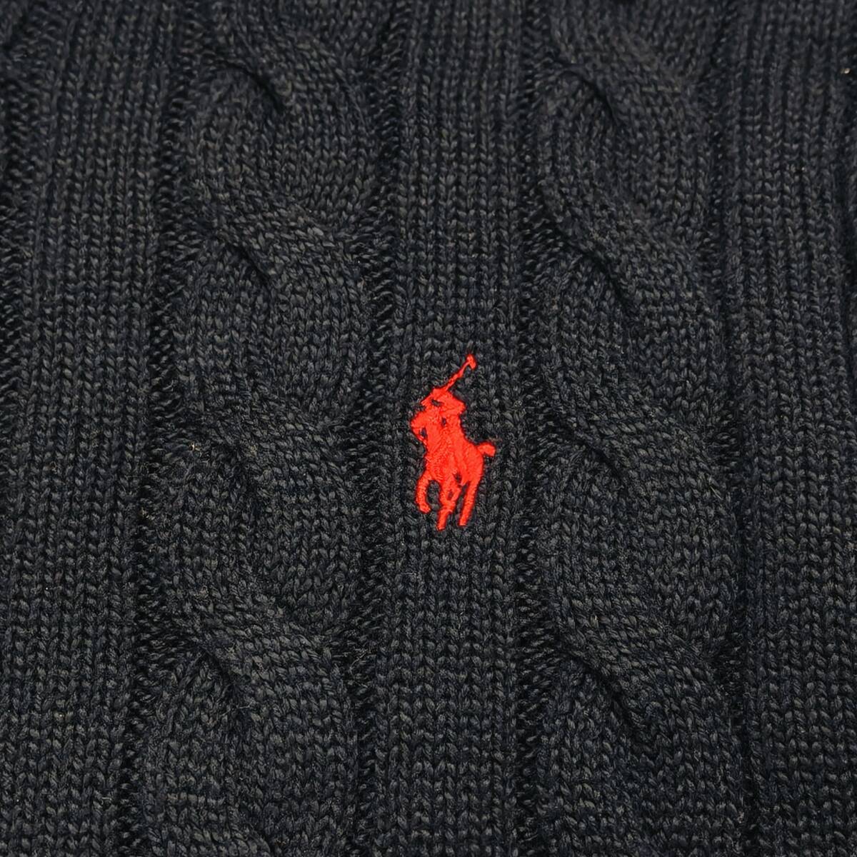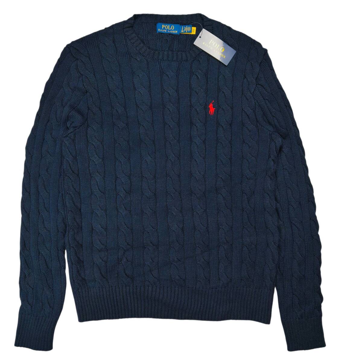 【未使用タグ付き】POLO RALPH LAUREN ケーブルニット ネイビー SP コットン100% ワンポイント刺繍 レッドポニー ポロラルフローレン