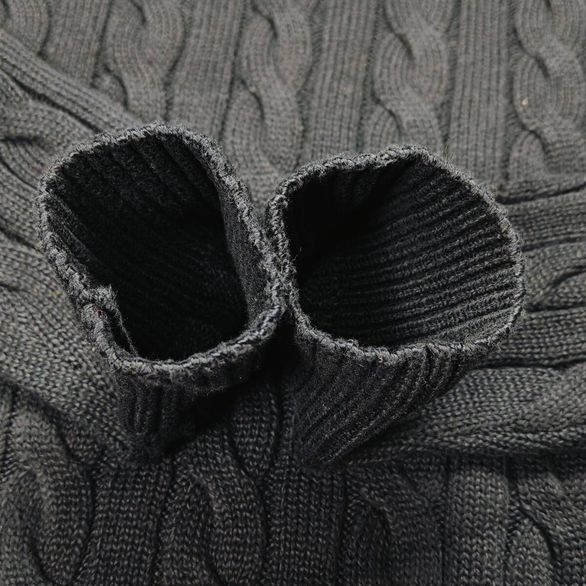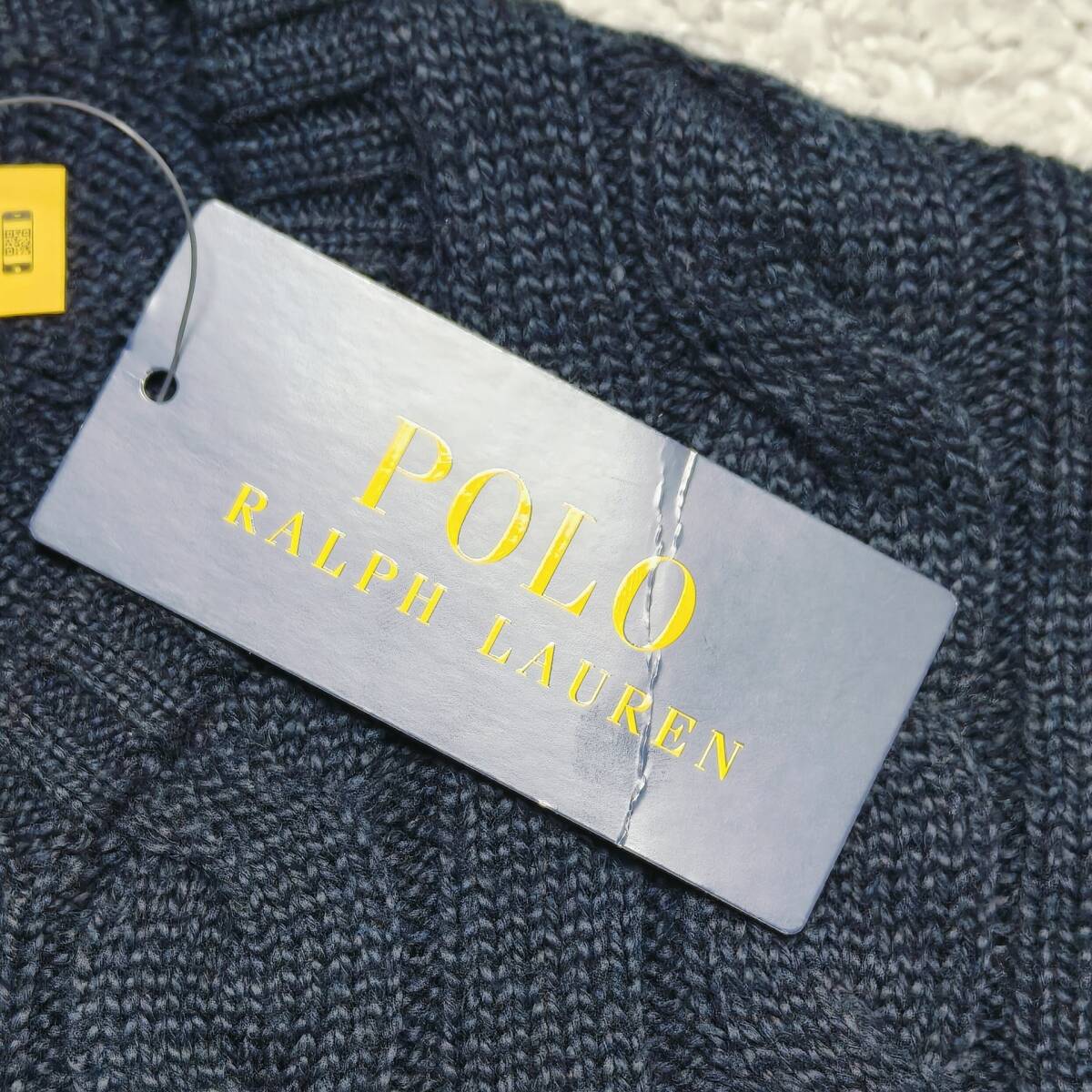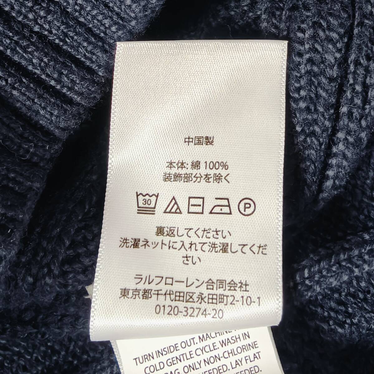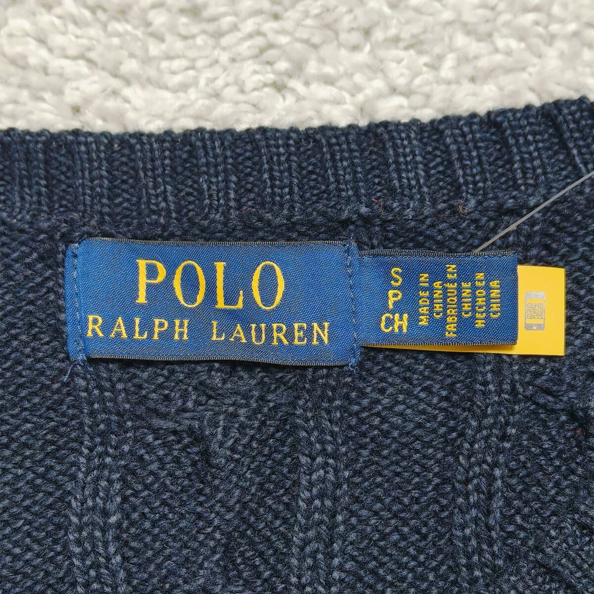 【未使用タグ付き】POLO RALPH LAUREN ケーブルニット ネイビー SP コットン100% ワンポイント刺繍 レッドポニー ポロラルフローレン