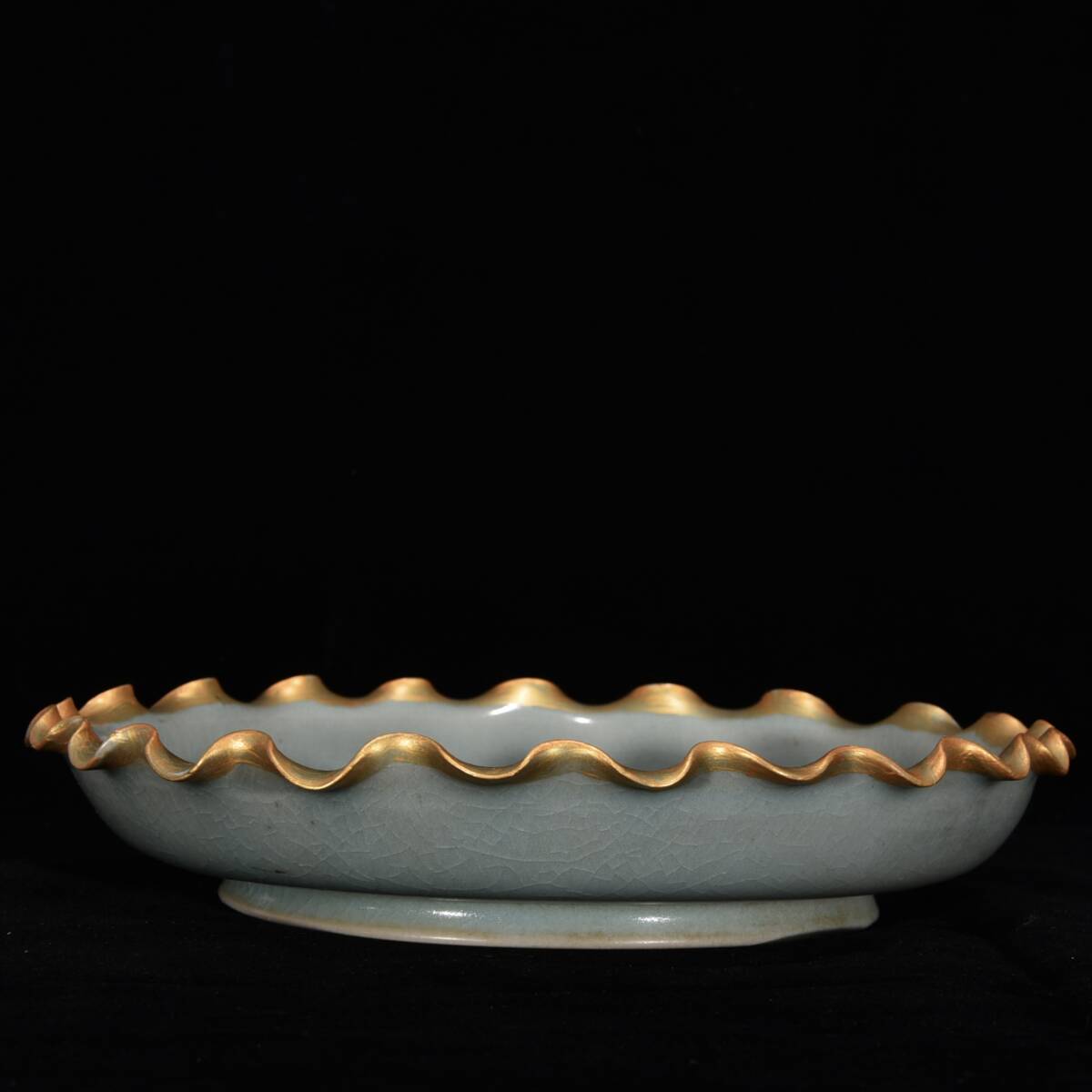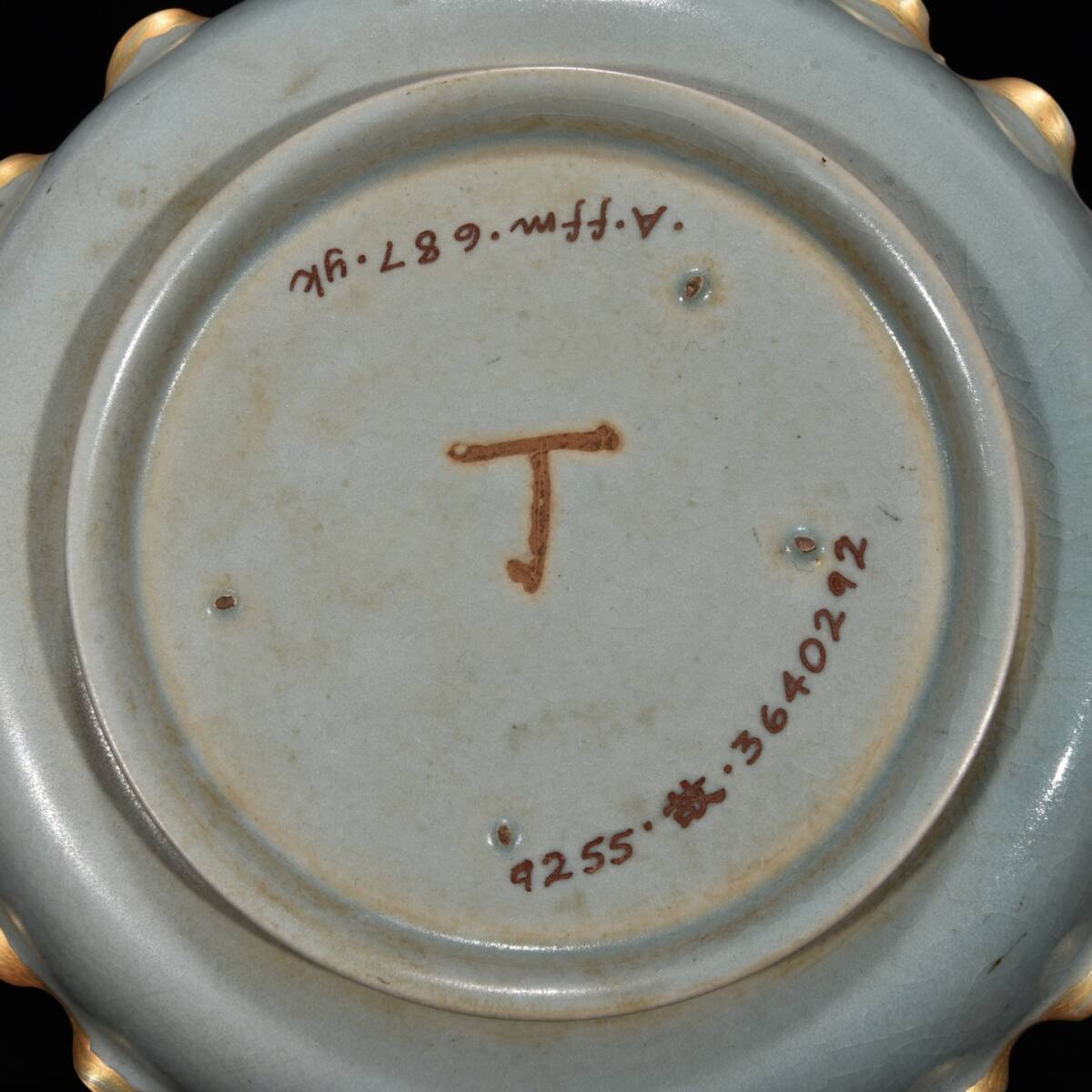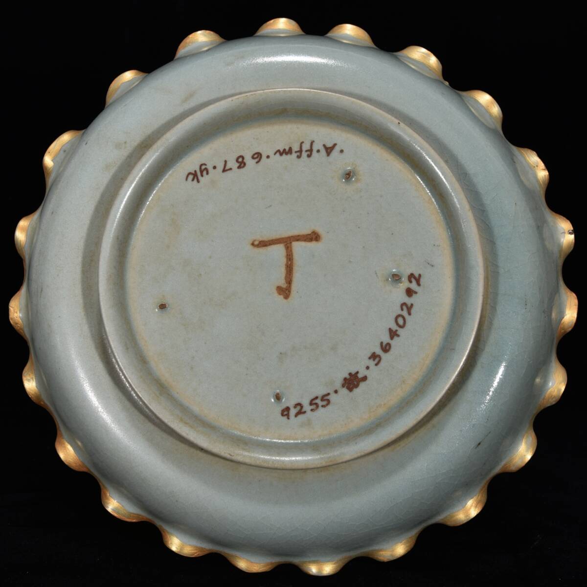 唐物 宋 汝窯 塗金刻像紋 花口洗 陶芸 古陶磁器 中国磁器 極細工 中国古玩 骨董品 古美味 D610