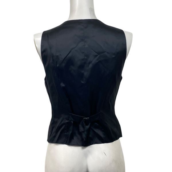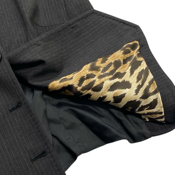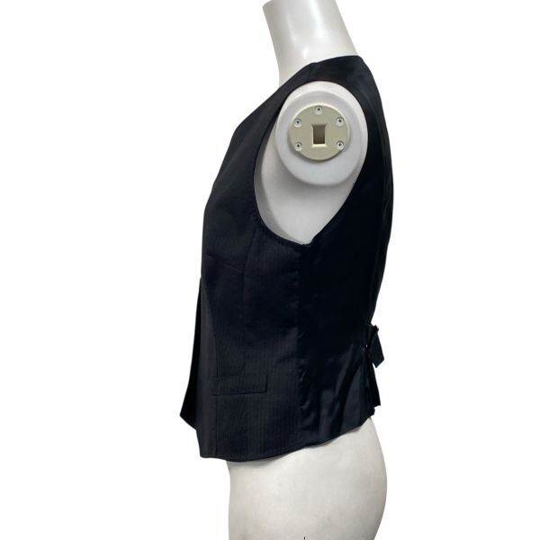 ストライプベスト ジレ レオパード柄 トップス ベスト ノースリーブ ボタンダウン 内側ヒョウ柄 背後調整ベルトあり