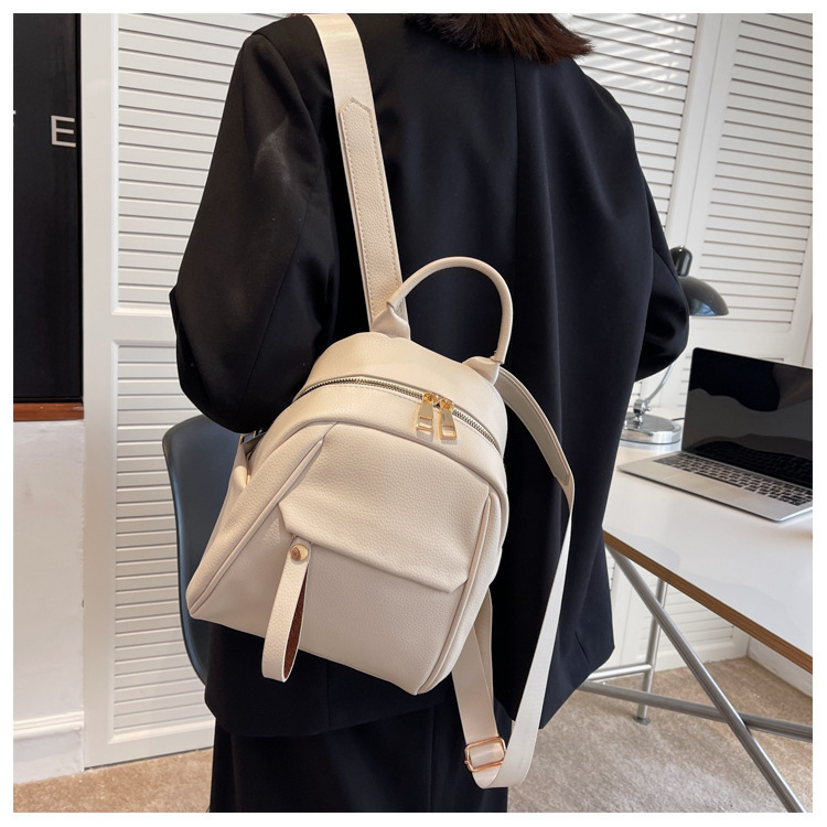 リュックサック デイパック 肩掛け ミニバッグ 手提げバッグ puレザー 手提げ ファスナー付き ミニリュック 米色
