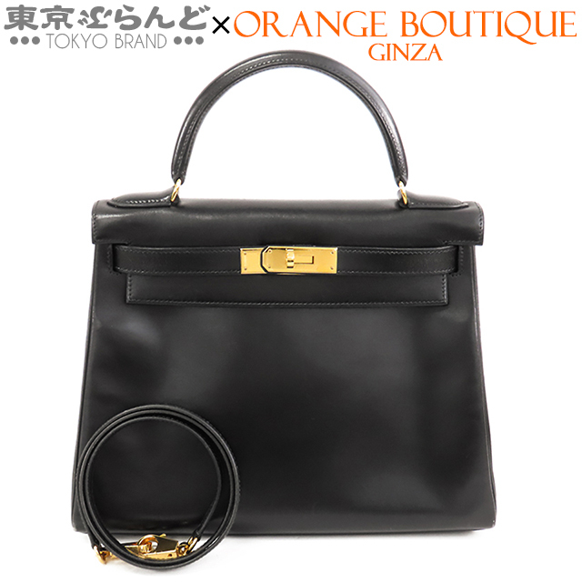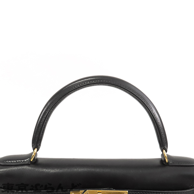 101781132 エルメス ケリー28 ○U刻印 ブラック ゴールド金具 ボックスカーフ 内縫 2WAY ハンドバッグ レディース ヴィンテージ