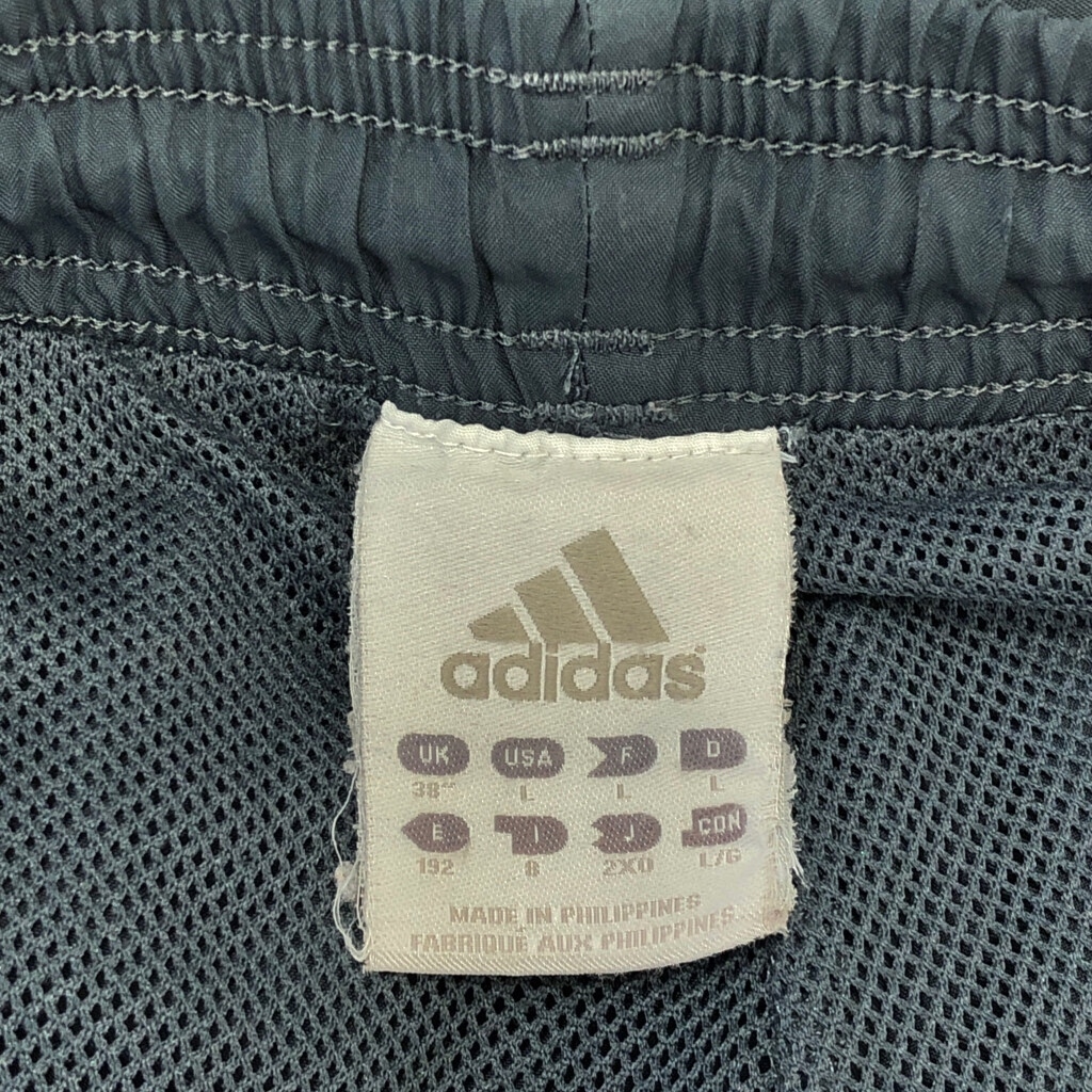 [商品管理番号] S1675 [ブランド] adidas/アディダス [サイズ] L [実寸サイズ] ウエスト(調整可能):約82cm 股上:約34cm 股下:約78cm わたり幅:約40cm 裾幅:約23cm [主な素材] 表地 : ポリエステル [色] ブルー [仕様] 裏地メッシュ スポーツ [状態] キズ:もも、スネ | |||