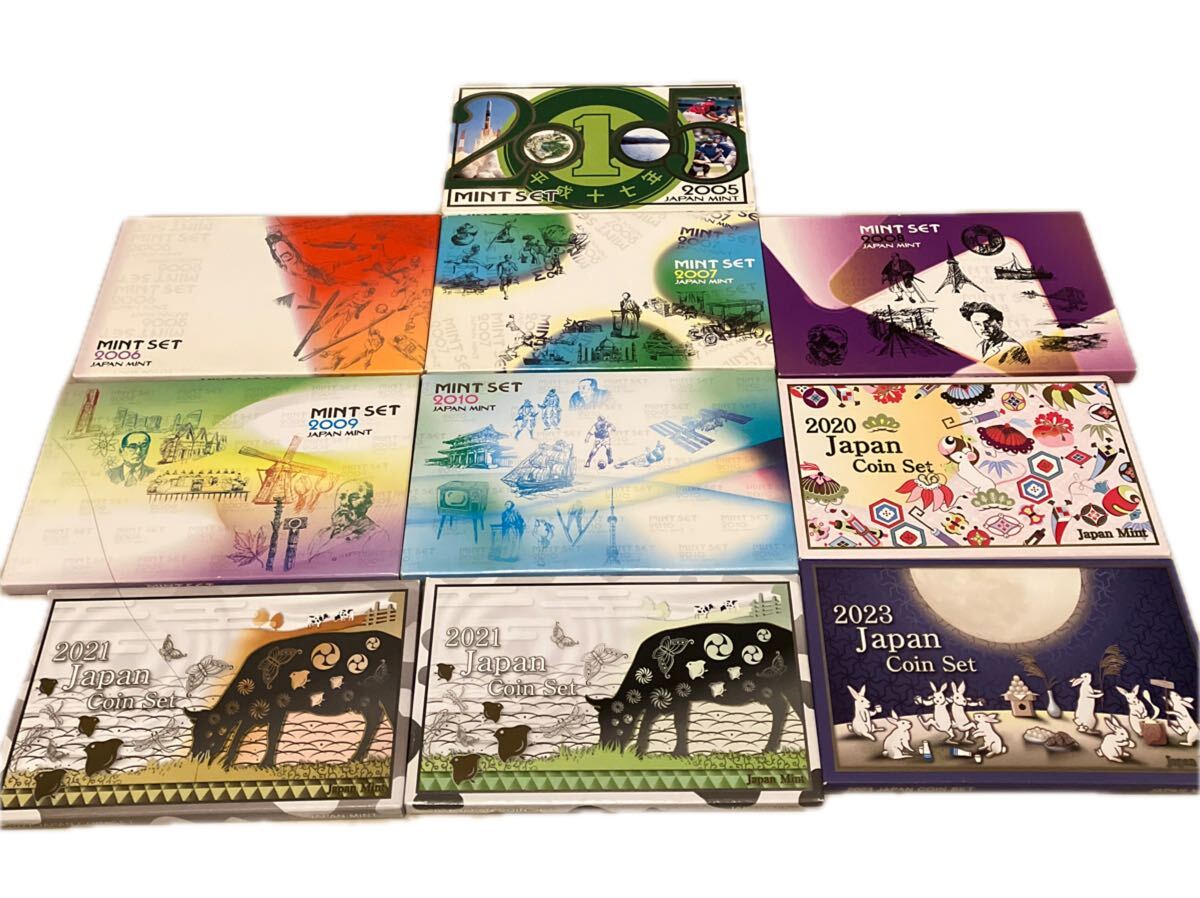 2005〜2010、2020.2021の箱の種類がちがうものでそれぞれ1個ずつ、2023のミントセットになります。