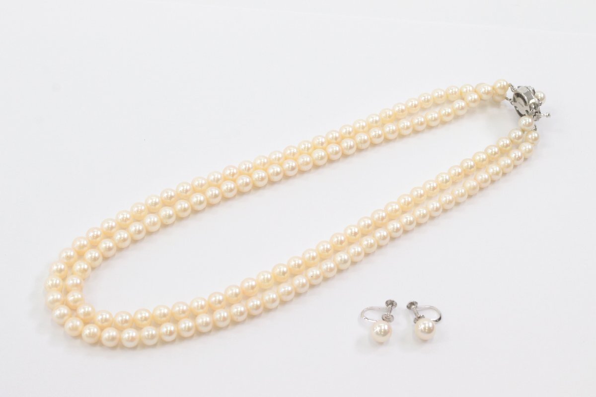 【2点】本真珠 パール 留め具 シルバー 約6.0-6.3mm珠 ネックレス 約7.2mm珠 イヤリング K14WG アクセサリー 3021-Y | |