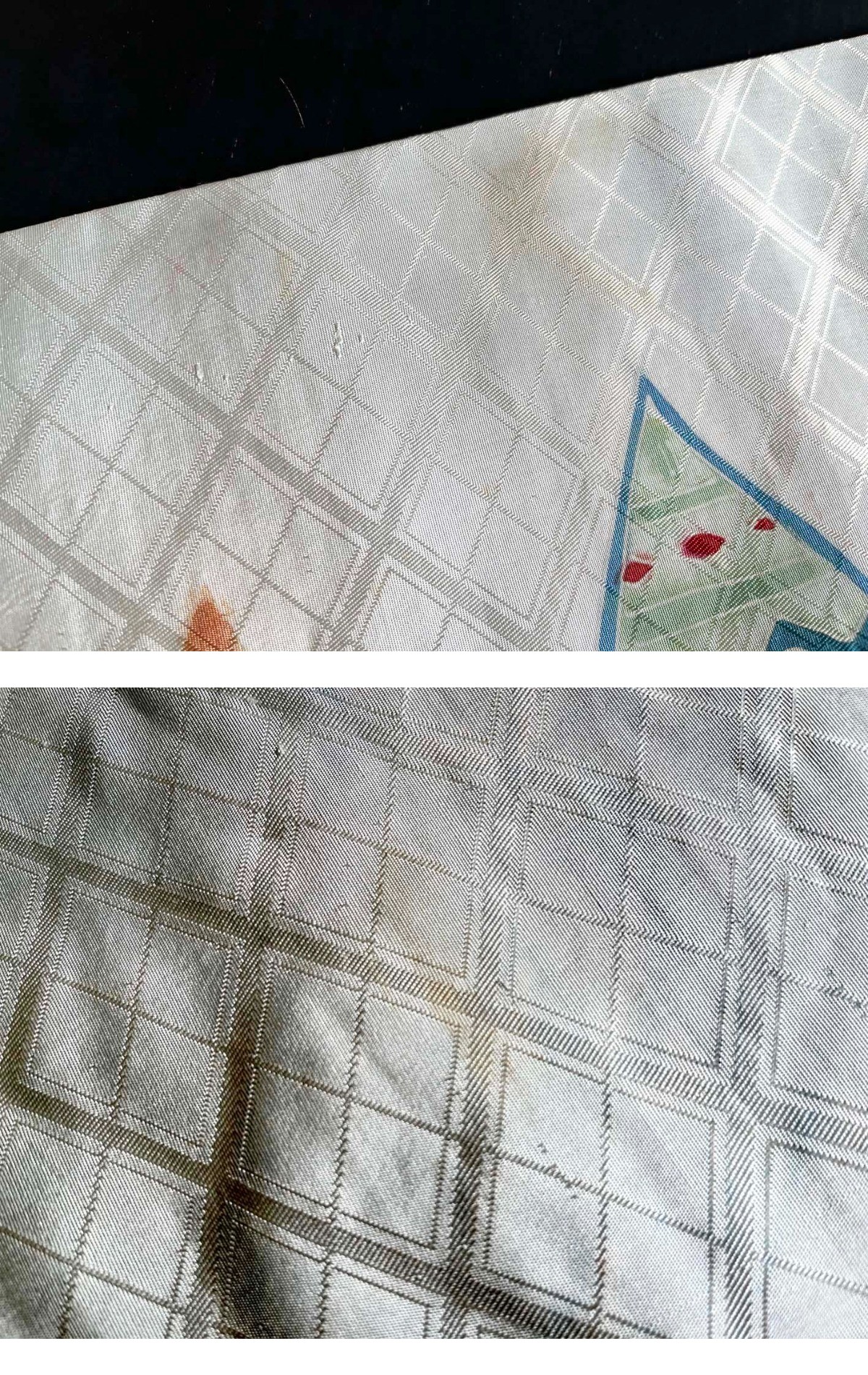 アンティークの染丸帯。 淡い水色の暈し地にアール・ヌーヴォーなデザインが可愛らしく目を惹く一品。鳥や洋花など可愛らしいタッチで描かれています。 当店は基本的に入札の無かった商品でも再出品はしません。殆どのものが1点ものとなっておりますので、この機会に是非オークションにご参加下さい。 また、いずれの商品も即決価格での販売は考えておりません。オークション終了までお付き合い下さい。 ●素材 正絹 ●寸法 全長:約393.5cm×32cm ※手作業での採寸のため、若干の誤差が生じる場合がございます。ご了承ください。 ●状態 ランク【B】 胴側に茶ジミがあります。その他わずかに薄アクなどがありますが、特にこれといった致命的な難は見当たらず、概ね良好です。リサイクル・アンティーク品に親しまれている方でしたら個人差はありますが着用可能な範囲かと思います。 《状態目安ランク表》 【A】大きく目立つ難は見当たらない美品です。 【B】僅かな難等はありますが中古品としては良い状態です。 【C】中古品特有のダメージ・使用感あり。着用は個人差になると思われます。 【D】目立つ難あり。着用は難しい商品です。素材用としてどうぞ。 ☆その他、下記項目をよくお読み頂きお取り引きをお願い出来ればと思います。☆ |