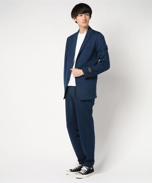 セットアップ スーツ ネイビー 青 紺 ジャケット パンツ テーラード サイズ L ナノユニバース 6740118003 無地 テレワーク ビジカジ 春 秋