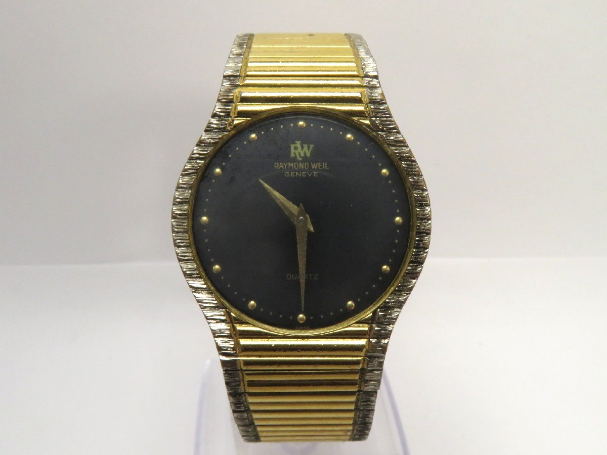 1円開始■ジャンク■ レイモンドウィル 18K ブラック クオーツ ユニセックス 腕時計 AB96903