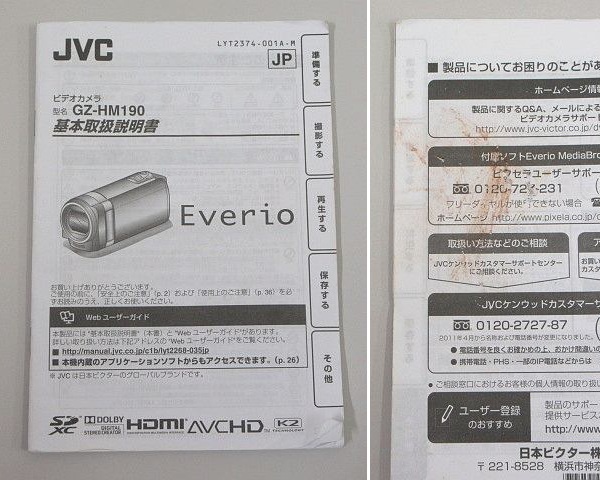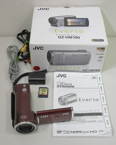 779☆JVC Everio/エブリオ デジタルビデオカメラ GZ-HM190-R レッド系 2011年製 バッテリ+説明書+箱付 動作確認OK!