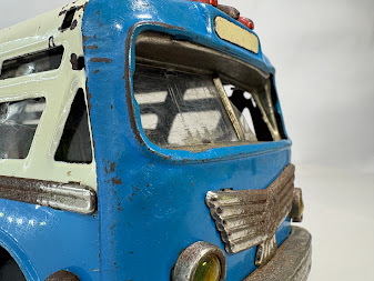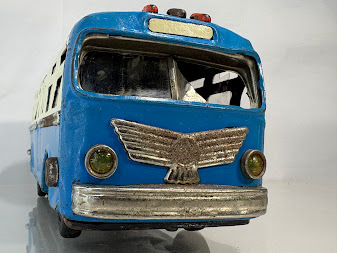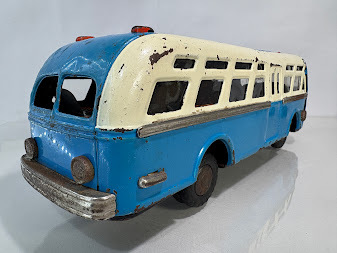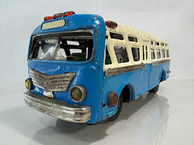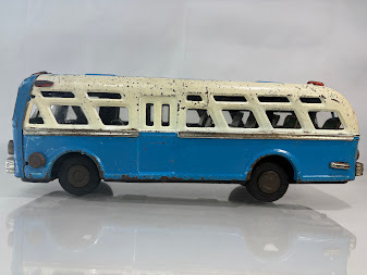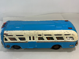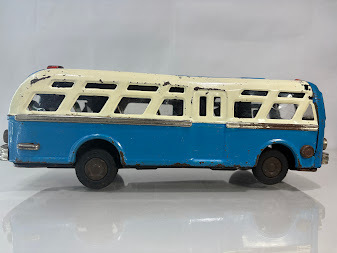 メーカー不明 ブリキ フリクション バス 全長29センチ 青 ダブルタイヤ