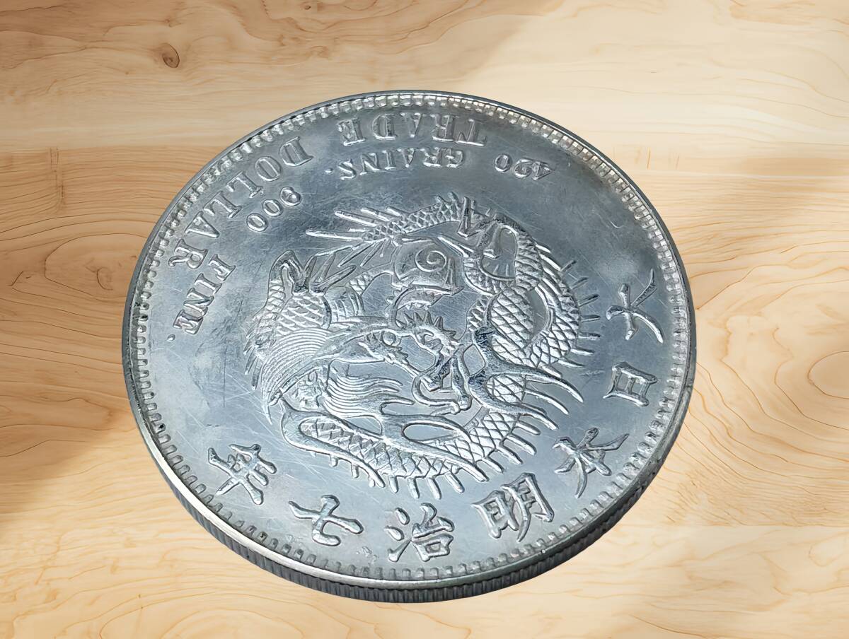 骨董品   送料無料 極美品 日本硬貨 貿易銀 大日本 明治七年 旭日竜 比重:10.186 銀幣