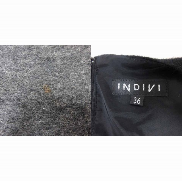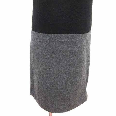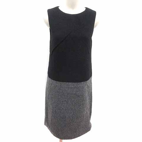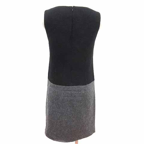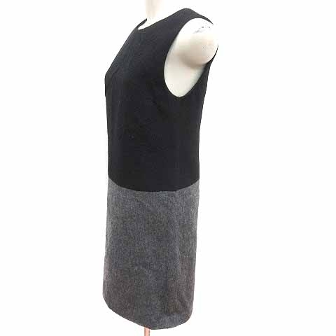 インディヴィ INDIVI ワンピース ひざ丈 バイカラー ノースリーブ ウール 36 S 黒 ブラック グレー /YK レディース