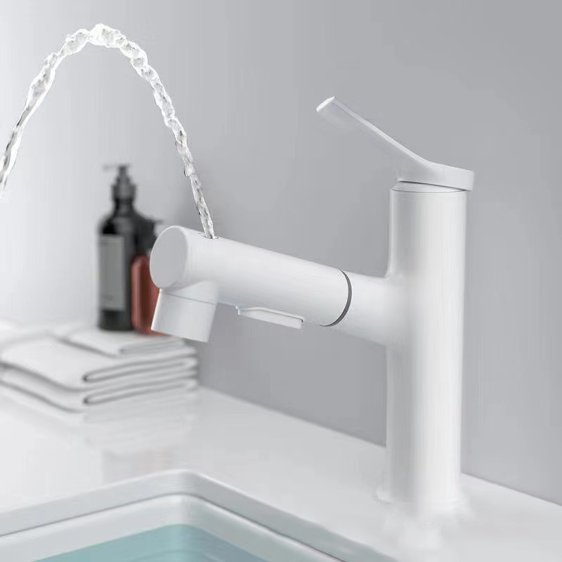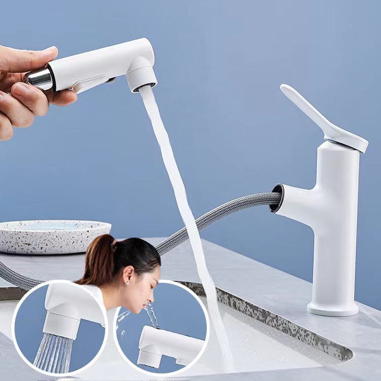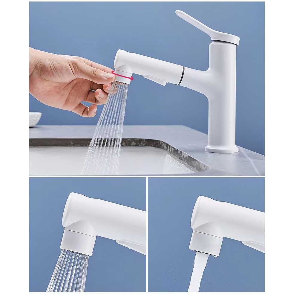 洗面台蛇口 混合水栓 引出し式 上向き出水 浴室用水栓 洗面 洗髪用 3way出水モード 泡水流 シャワーヘッド  シングルレバー  ホワイト