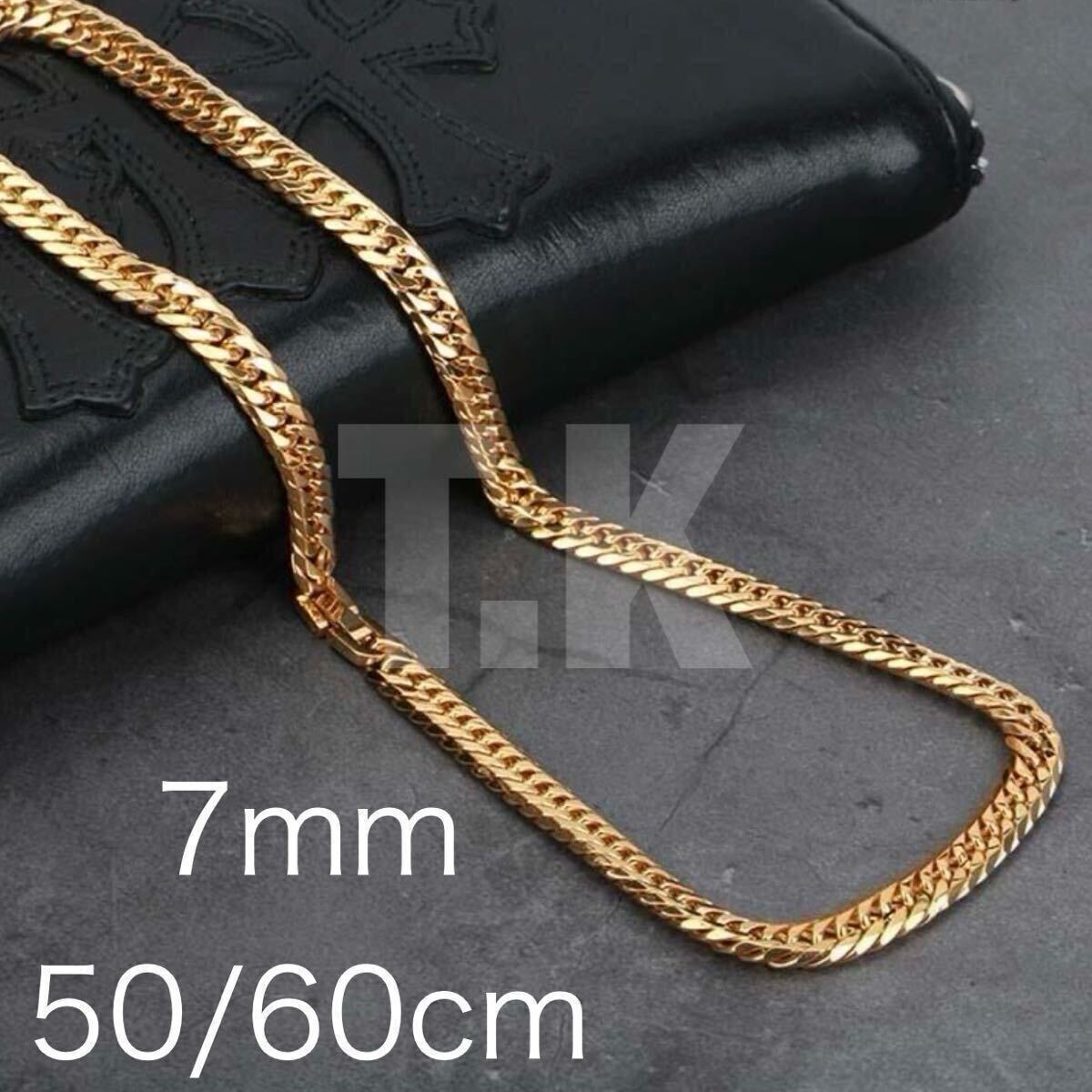 喜平ネックレス ダブル ステンレス 中折式 マイアミキューバンリンク ゴールド 金 gold 7mm 50/60cm