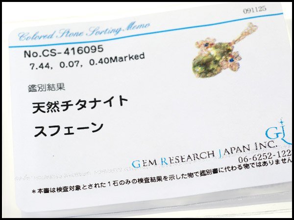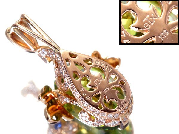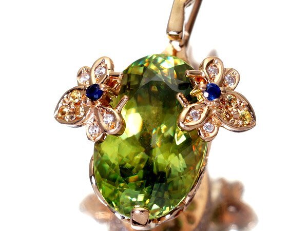 最高峰の色調が絶品の超希少な超大粒の特級極上天然スフェーン7.44ct&天然ダイヤモンド総計0.40ct&天然ブルーサファイア総計0.07ctをセッティングした、超高級K18PGペンダントヘッドを1円から大赤字覚悟で特別大放出とさせて頂きます!