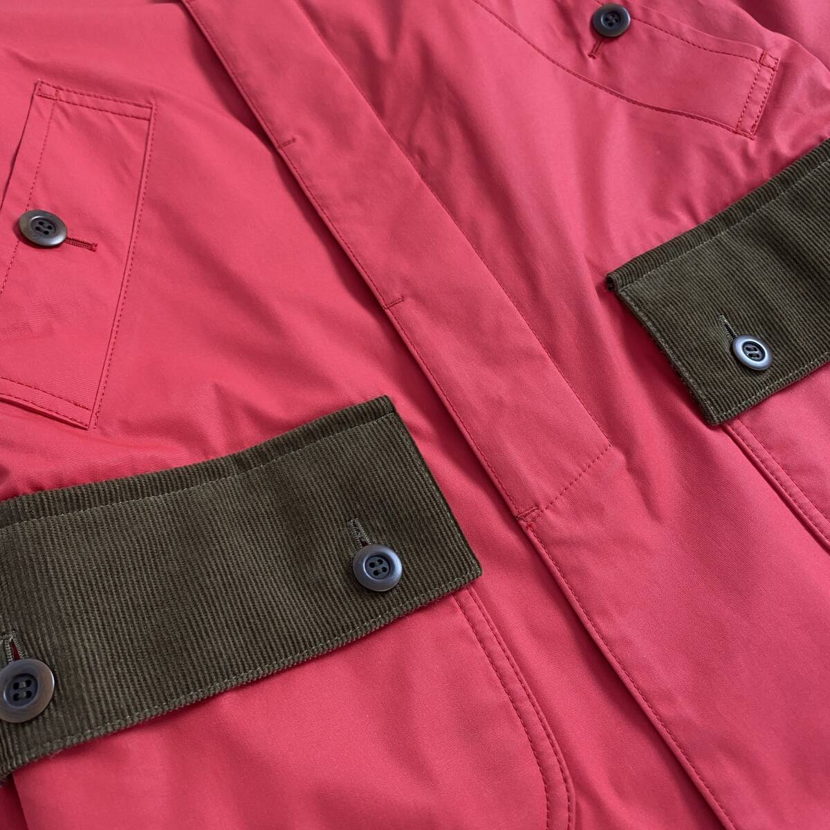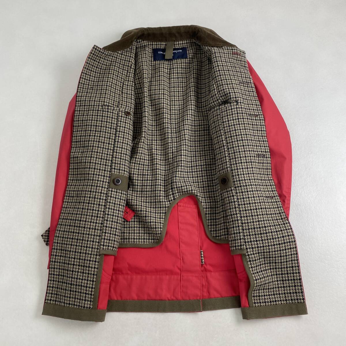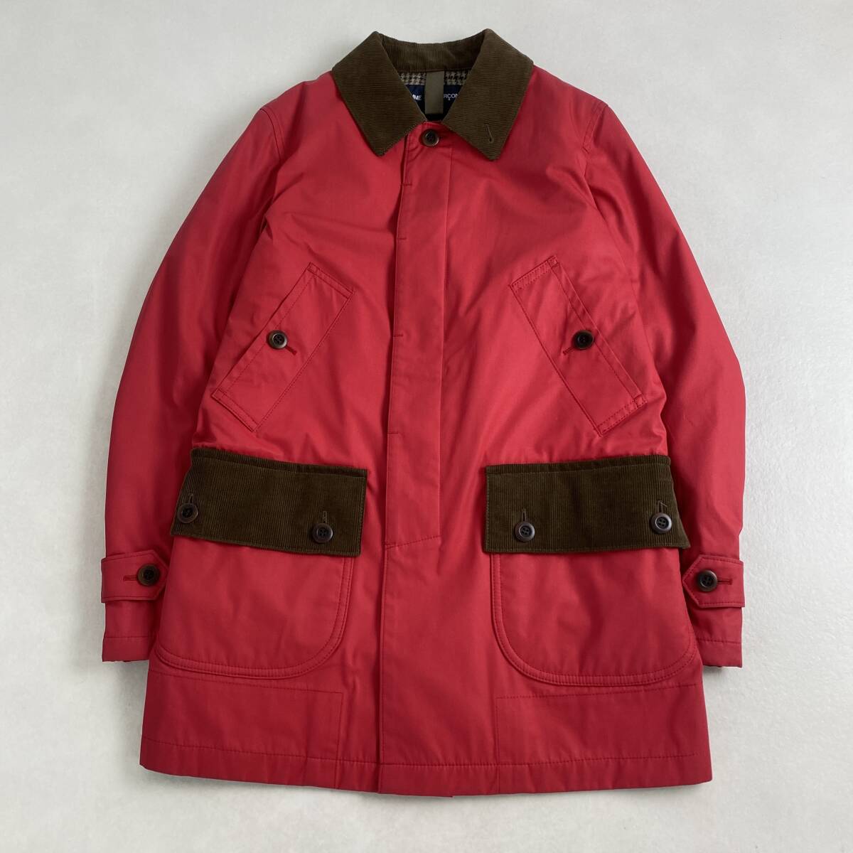 COMME des GARCONS HOMME ステンカラーコート コーデュロイ コムデギャルソンオム チェック裏地 切り替え レッド