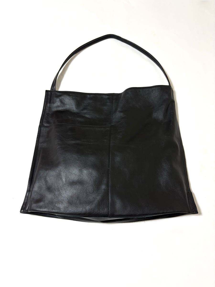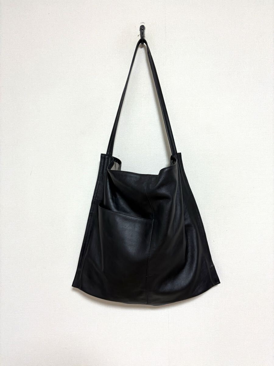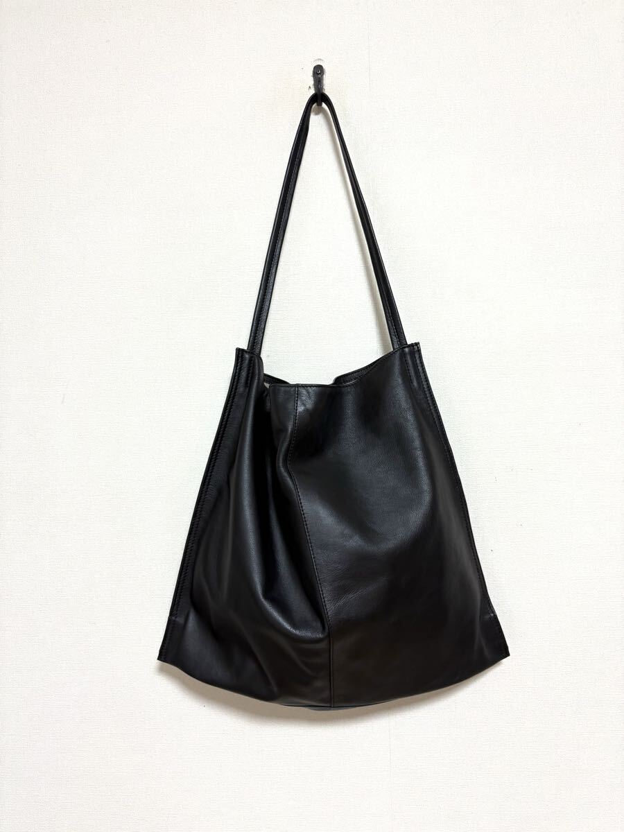 「イア パピヨネ」のショルダーバッグです。サイズ・・・縦約35cm、横約40cm、マチ約8cm、ショルダー約61cm。素材・・・レザー。カラー・・・黒。定価・・・16500円。柔らかい上質な本革を使用した、上品な雰囲気のワンハンドルバッグです。すっきりとしたシルエットで持ちやすいデザインなのでオンオフ問わず使えます。程よいサイズ感で、モノを入れるとマチが広がるのでたっぷり入ります。ショルダー紐の長さ調節は出来ませんが、斜め掛けは可能です(あまり余裕はないです)。数年前に購入し、何度か使用しました。細かな擦れキズはありますが、目立つダメージはないです。ただ、あくまでユーズドですので、神経質な方はご遠慮ください保存袋等はありません。よろしくお願いいたします。