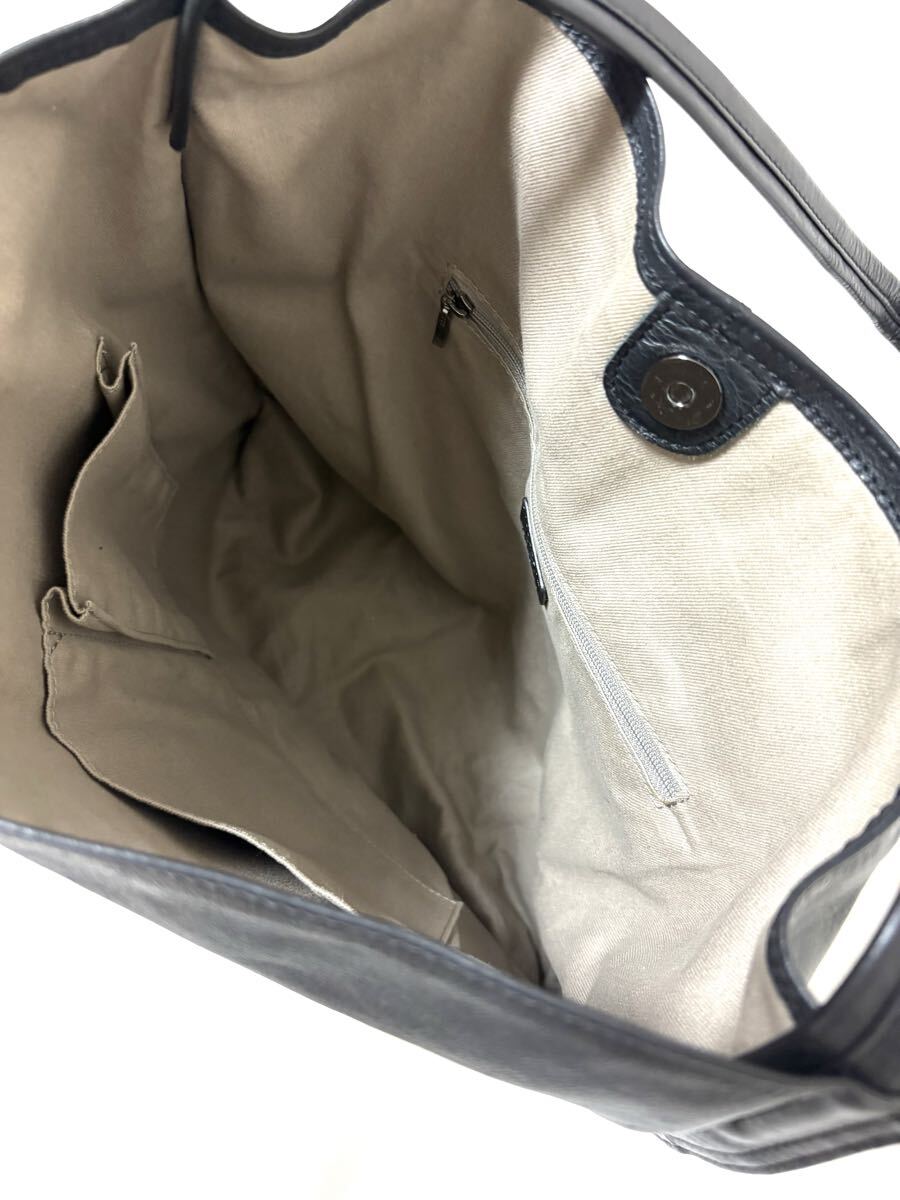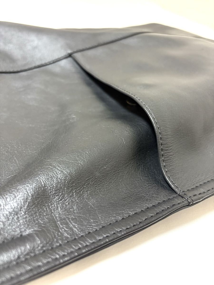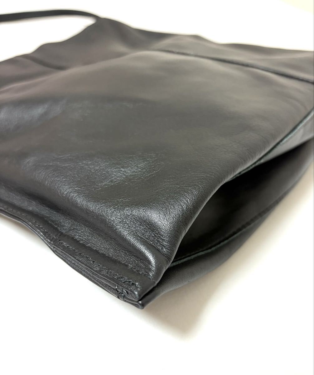 「イア パピヨネ」のショルダーバッグです。サイズ・・・縦約35cm、横約40cm、マチ約8cm、ショルダー約61cm。素材・・・レザー。カラー・・・黒。定価・・・16500円。柔らかい上質な本革を使用した、上品な雰囲気のワンハンドルバッグです。すっきりとしたシルエットで持ちやすいデザインなのでオンオフ問わず使えます。程よいサイズ感で、モノを入れるとマチが広がるのでたっぷり入ります。ショルダー紐の長さ調節は出来ませんが、斜め掛けは可能です(あまり余裕はないです)。数年前に購入し、何度か使用しました。細かな擦れキズはありますが、目立つダメージはないです。ただ、あくまでユーズドですので、神経質な方はご遠慮ください保存袋等はありません。よろしくお願いいたします。