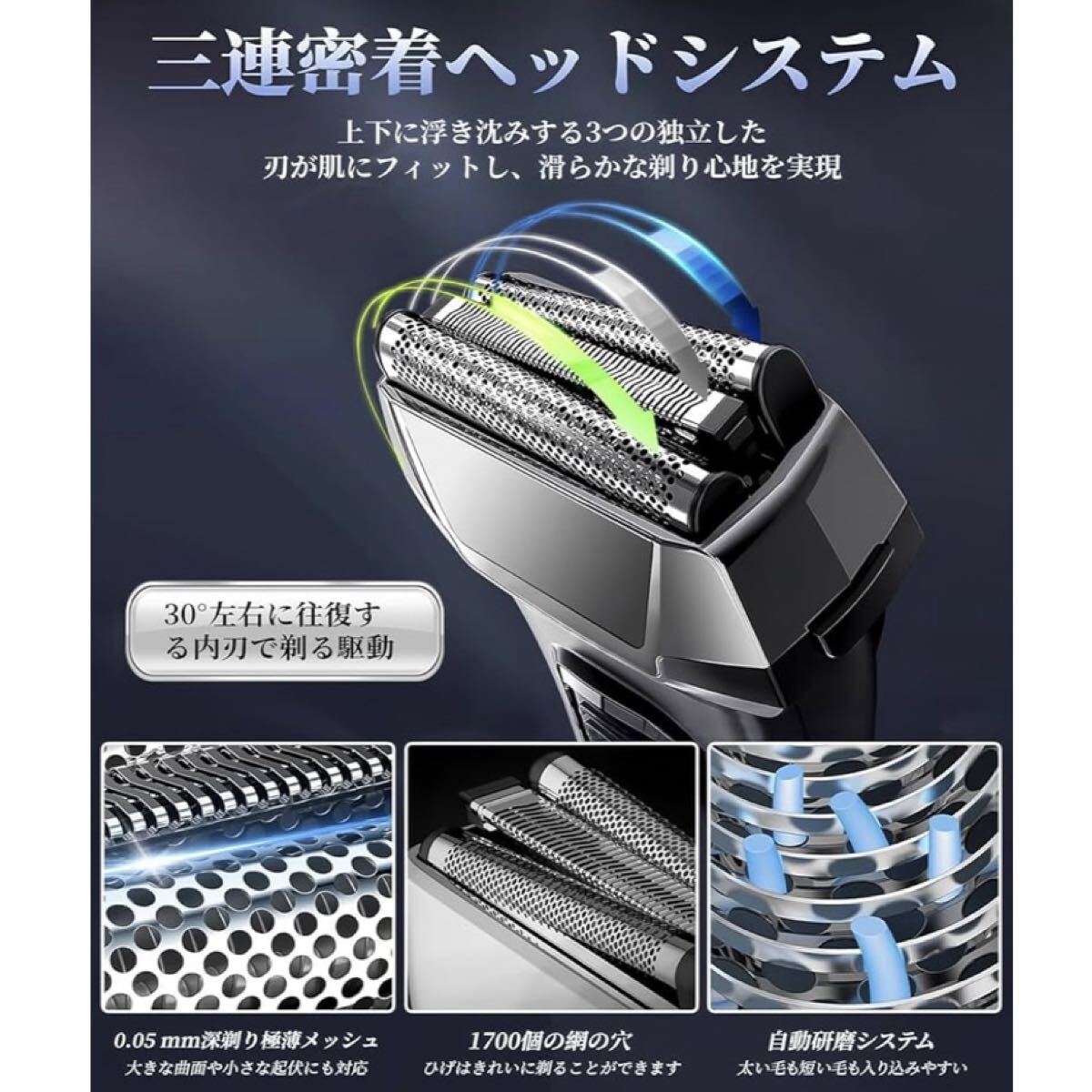 【日本製メッシュブレード&超高速モーター】この 髭剃り 電動 は日本製の高精度メッシュブレードを採用し、約18000ストローク/分の高速リニアモーターで滑らかな剃り心地を提供します。 シェーバー 精密に研磨された内刃は、どんなに硬く太いヒゲでも一瞬でカットし、また、刃先の耐久性も優れており、長期間使用しても鋭利な状態を維持し、肌当たりがよく深剃りを実現する 電動シェーバー となります。