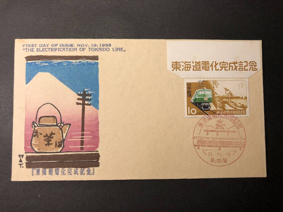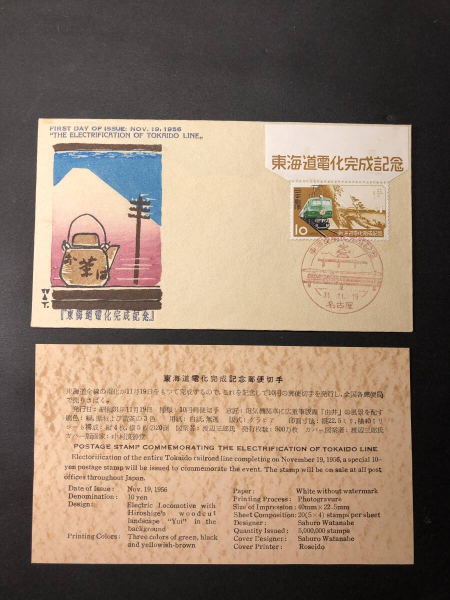 ★FDC 初日カバー★東海道電化完成記念 「EF58型と広重の(由井)」 中村浪静堂版 昭和31年発行 Y9001