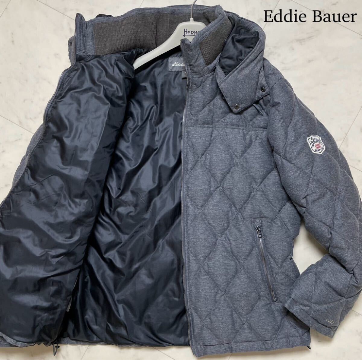 XL相当★ エディーバウアー Eddie Bauer キルティング ダウンジャケット パーカー 着脱フード ブルゾン 大きいサイズ FP650 グレー メンズ