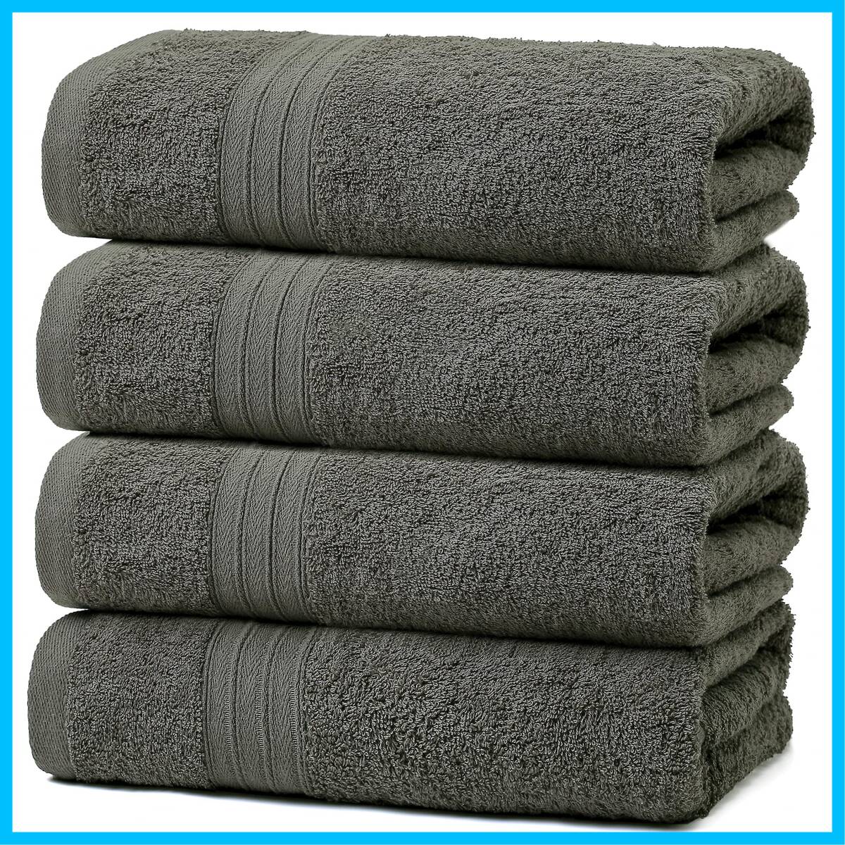 コットン 人気 タオル ふわふわ セット の肌触り バスタオル ホテルスタイル 吸水 4枚 (バスタオル, 綿 灰) 100%