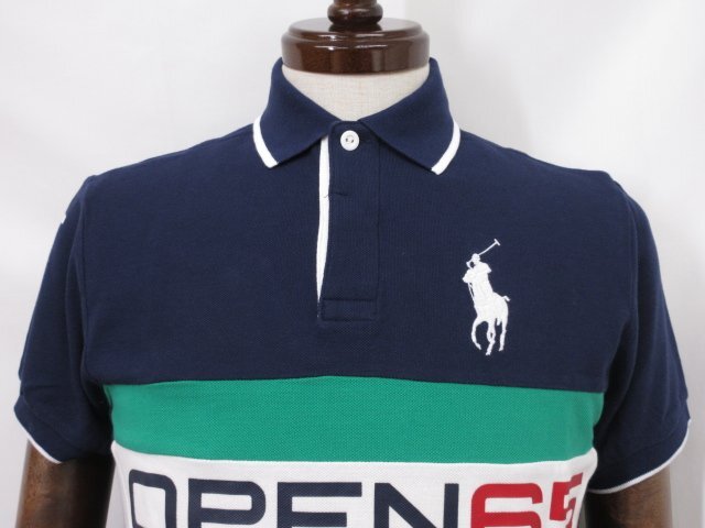 超美品【ポロラルフローレン】710549826001 CUSTOM FIT ビッグポニー刺繍 鹿の子生地 半袖ポロシャツ (メンズ) XS ネイビー系 ◇17MT6365◇