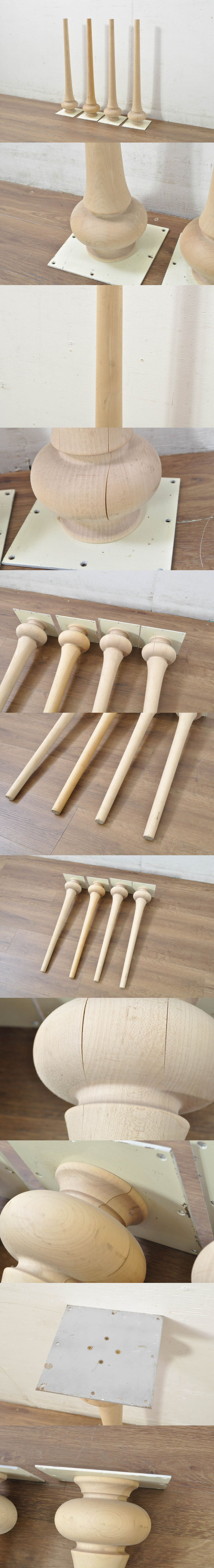 R-080810 フランスビンテージ ビーチ材 挽き物 テーブル脚4本セット(DIY、資材、材料、ヴィンテージ)