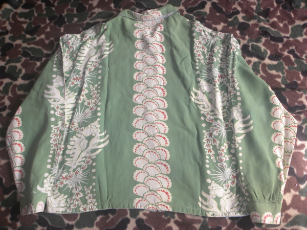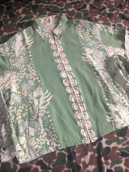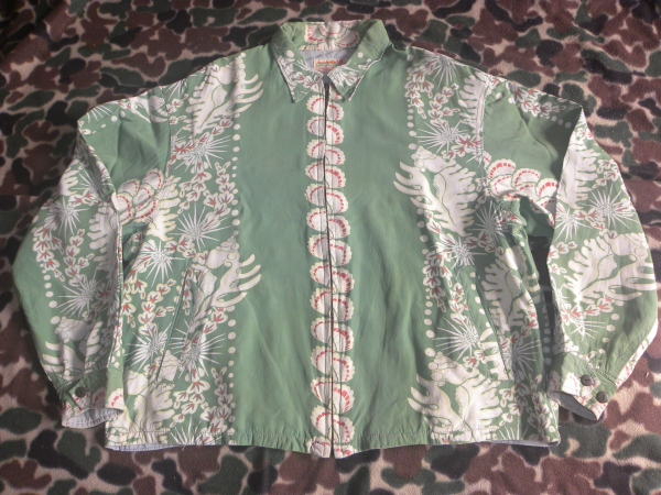 激レア!ハリウッドランチマーケット・ハワイアンスカジャン・スーベニアジャケット90年代ヴィンテージ・聖林公司になります。 今では入手困難な90年代のハリウッドランチマーケット・La Mchachaのハワイアンスカジャン・スーベニアジャケットでグリーンカラーにハワイアンデザインがとってもいい感じです。 リバーシブルでも着用できます。生地は品質タグがなくなってりますが、表生地はレーヨン生地かと思います。なかなか見かけないデザインになりますので、探していた方、コレクションしている方におススメです。 サイズ表記は3(通常のL)になります。 詳しいサイズは肩幅56、身幅66、袖丈60、着丈61センチくらいになります。平置き状態での計測になりますので多少の誤差はご了承願います。 状態は中古の状態で、襟周り、袖口に汚れ、全体に細かいキズ汚れ、リバーシブル側の裾のストラップボタンが一つ欠品している状態ですが、90年代のヴィンテージとしてみればかなりいい状態かと思いますのでこれからもまだまだ着用していただける状態になります。 普段、古着、ヴィンテージを着用する方には問題のない状態でも、普段、新品等を着用する方にはダメージは大きく感じられる場合がございますので、古着、ヴィンテージに理解のある入札をよろしくお願いします。 探していた方、コレクションしている方など、ぜひこの機会にどうぞ!