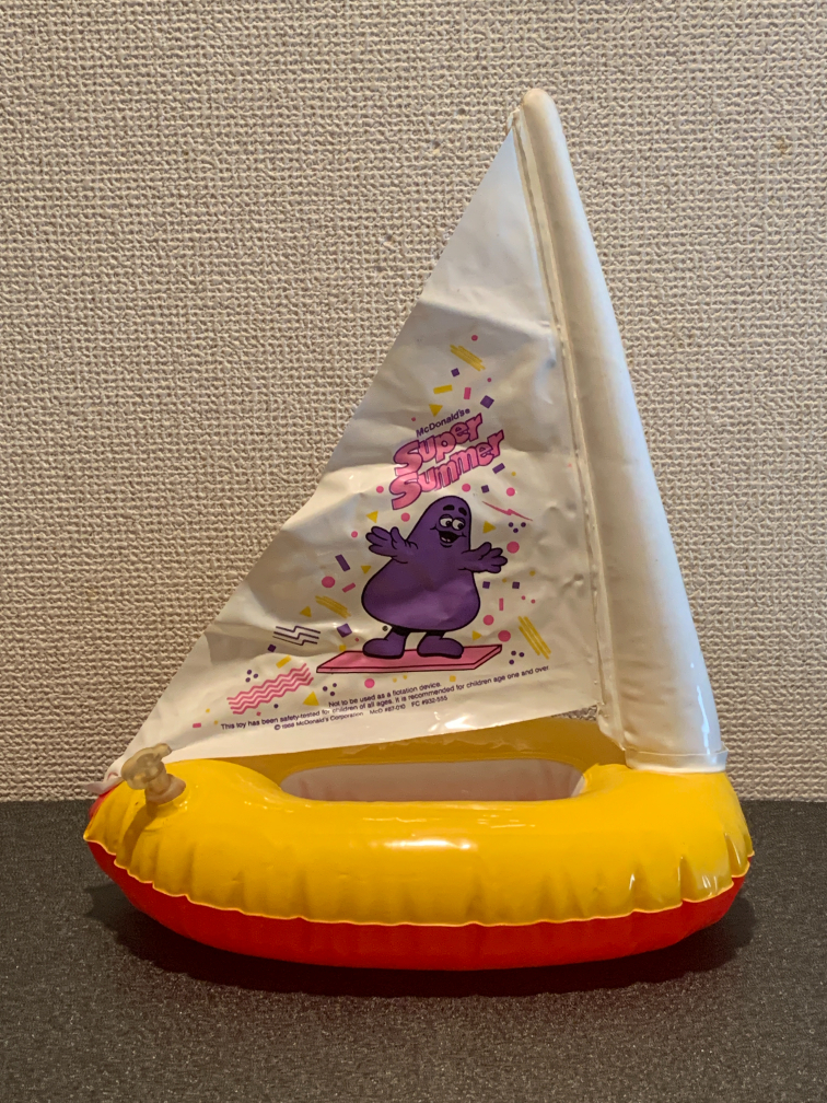 マクドナルド ハッピーセット の 「玩具(プールトイ)」をコレクション整理の為出品します。膨らみますがかなり昔の品となりますので古さ・保管状態の悪さ等から考えてジャンク品寄りのFANアイテムとしてご購入下さい。  ※入手から長期経過した品物は、私の記憶違いや勘違いで入手時期・キャラ名 等に誤表記があるかもしれませんので、デザイン・キャラクター 等 重要な部分は必ず写真をご確認ください。(写真とタイトル・説明に違いがある場合、写真の物が商品ですので写真が真となります。)※検索用※ マック マクド 玩具 ドナルド・マクドナルド 水遊び プール 海 お風呂 玩具