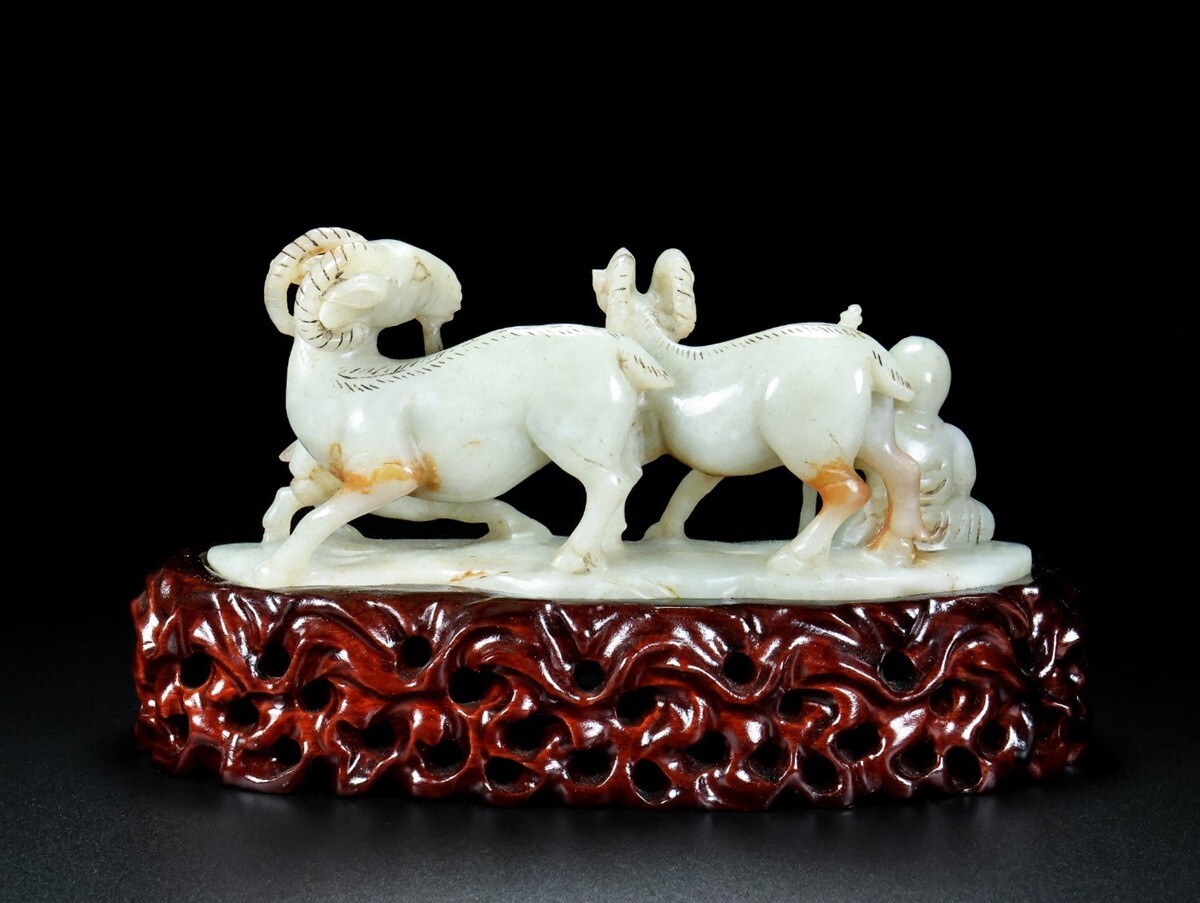 【瓏】和田玉 彫 三羊開泰 清代 乾隆年製 極細工 手彫り 置物擺件 中国古賞物 古美術 蔵出