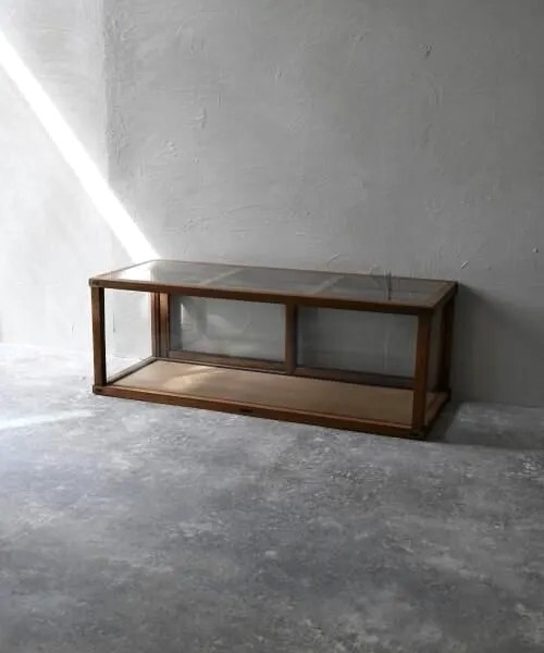 古い木枠ローガラスケース アンティークアトリエショーケース飾り棚陳列棚食器棚店舗什器