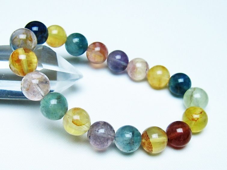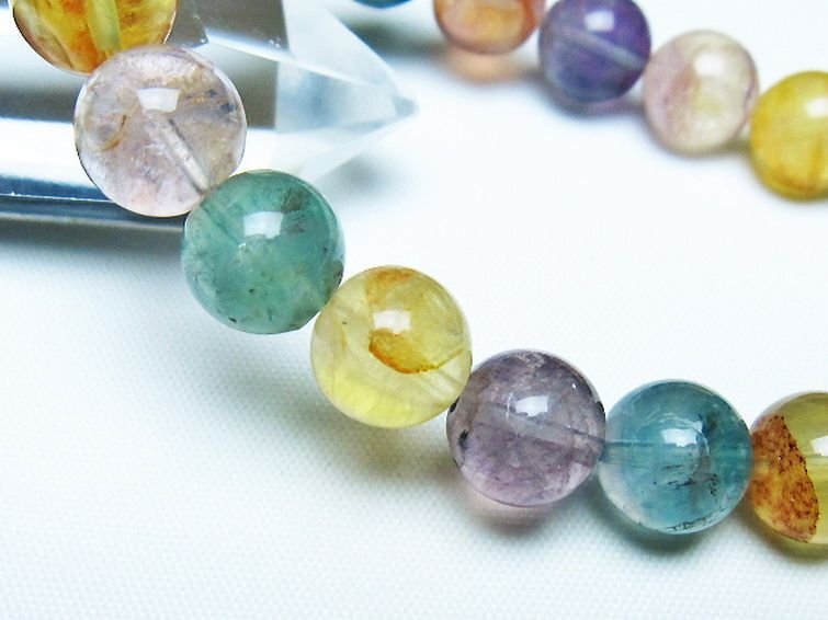 ■商品名: フローライト ブレスレット ■商品ID: T229-5414 ■商品重量:約 33g ■商品サイズ:内周約:155mm(±5mm)粒直径約:10mm(±0.5mm) 【フローライト(蛍石)】 フローライトは鮮やかなカラーのグラデーションが美しい天然石で、トルマリンに次ぐカラーバリエーションを持つとされています。 フローライトの中に白い羽のような内包物が入ったものは「エンジェルフェザーフローライト」と呼ばれ、普通のフローライトに比べて癒しの効果に特化しているとされています。 白い内包物の正体は未だに解明されておらず、アラゴナイトの一種やゼオライト、クォーツなど諸説あります。 フローライトはラテン語で流れるという意味の「fluere」が由来となっており、その言葉どおり滞っていた気の流れを整えて心身と環境のバランスを調和させるエネルギーを持つとされています。 また「天才の石」とも呼ばれ、思考力と記憶力、集中力を高めるとされており、クリエイティブな能力を引き出すといわれています。 緑は癒し、紫は浄化、青は知性、黄色は希望など、色合いによって持つ意味や効果に違いがあるともされていますので、期待する効果によってフローライトを選ぶのもおすすめです。 ⇒ フローライトをもっと詳しく ◆ワンポイント情報 フローライトは硬度が低く、一方向に割れやすい劈開性を持つため衝撃を与えないようにしてください。 また、紫外線や水分も褪色や劣化の原因となりますので保管の際も注意が必要です。 |