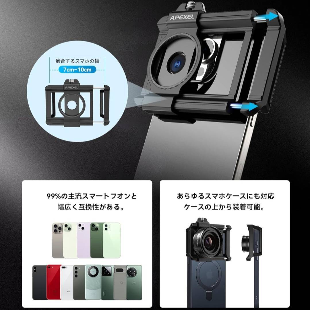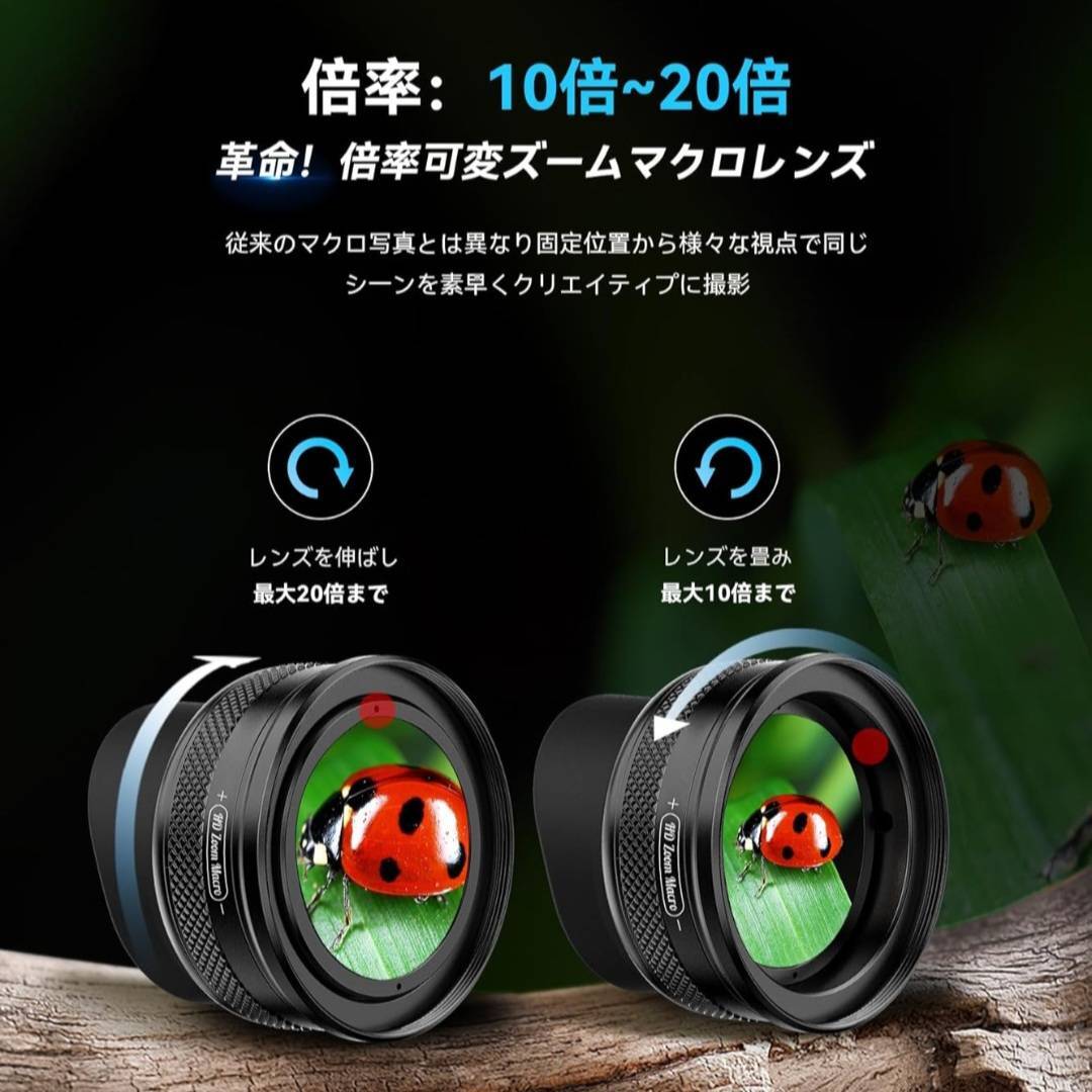 【1円オークション】APEXEL スマホ マクロレンズ 10-20倍 4.5-1.5cm焦点調整可能 HD 鮮明 光学レンズ アルミ合金製 (ZM100) BAS2030