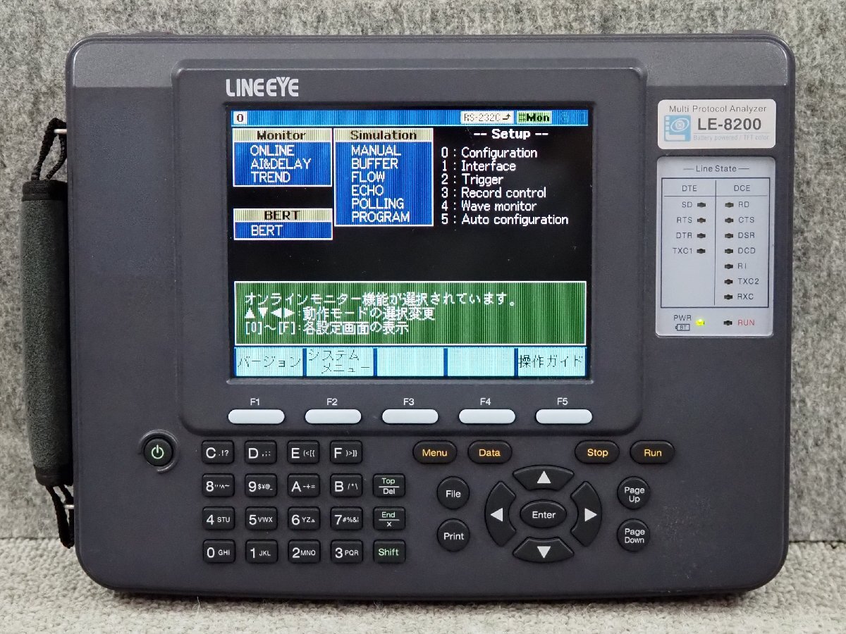 メーカー:LINE EYE(ラインアイ) 商品名/型番:MULTI PROTOCOL ANALYZER(マルチプロトコルアナライザー) LE-8200 付属品 :マニュアル、CD-ROM、ACアダプタ、ソフトケース、接続ケーブル 程度:中古品になります。キズ・スリキズがあります。 状態:知識不足の為、こちらでは通電のみの確認となりますのでジャンク品とお考え下さい。 | |