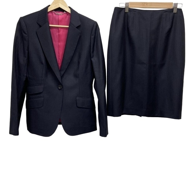 アクアスキュータム Aquascutum スカートスーツ - ダークネイビー レディース ストライプ/ネーム刺繍 レディーススーツ
