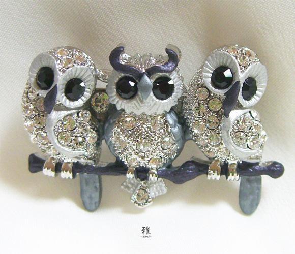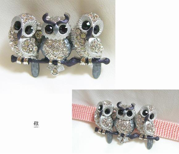 クリクリの眼が愛らしい「幸せを呼ぶ鳥」3匹の可愛いフクロウの帯留めをお作り致しました。(*´_`*)