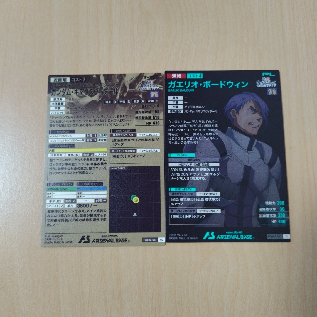 ガンダムアーセナルベース、Uレア、ガエリオ・ボードウィン&FQレア、ガンダム・キマリスヴィダールの出品となります。未使用品です。排出後、スリーブに入れて保管していますが初期キズなど気になさる方はご遠慮ください。配送料金は梱包代込みで全国一律、120円とさせていただきます。他の出品との同梱は対応いたします。ノークレム、ノーリターンにてお願いいたします。