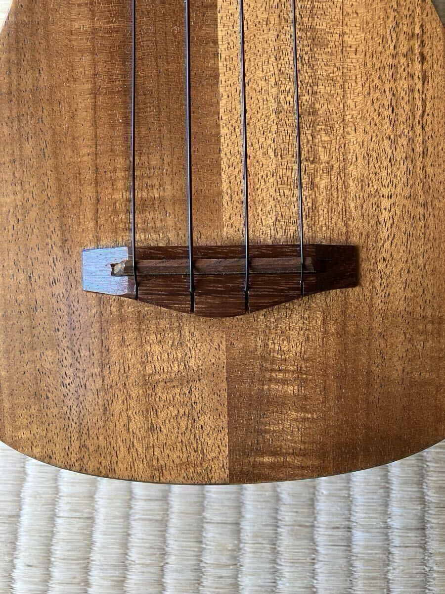 今流行りのカニレアなどの高級感満載の厚いグロス塗装だと、ほんの少しですが、こもるような音色になりがちですが、薄めの塗装なんで、ハワイアンコアの音色の良さを余すところなく引き出してます。
