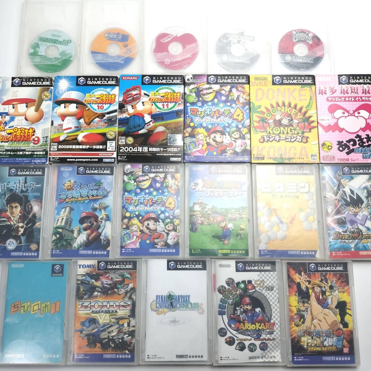 ・22本セットです。付属品は写真をご覧ください。 ・記載と写真に相違がある場合、写真が優先となります。写真のものをお送りします。 あつまれメイドインワリオ マリオパーティ4 ×2本 ドンキーコンガ パワプロ9 パワプロ10 パワプロ11 スーパーマリサンシャイン マリオゴルフファミリーツアー マリオカート ダブルダッシュ ピクミン ゾイドバーサス ちびロボ! ファイナルファンタジー クリスタルクロニクル ハリーポッター アズガバンの囚人 ワンピース グランドバトル デュエルマスターズ 激突!バトルアリーナ カスタムロボ 動物番長 ドカポンDX どうぶつの森+ ワンピースグランドバトル |