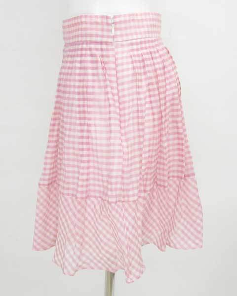 シルク混んで上品な風合いに仕上がったアイテム!ピンクのチェック柄とプリーツデザインが可愛らしいフレアーが入りエアリー感のあるスカートです。 |